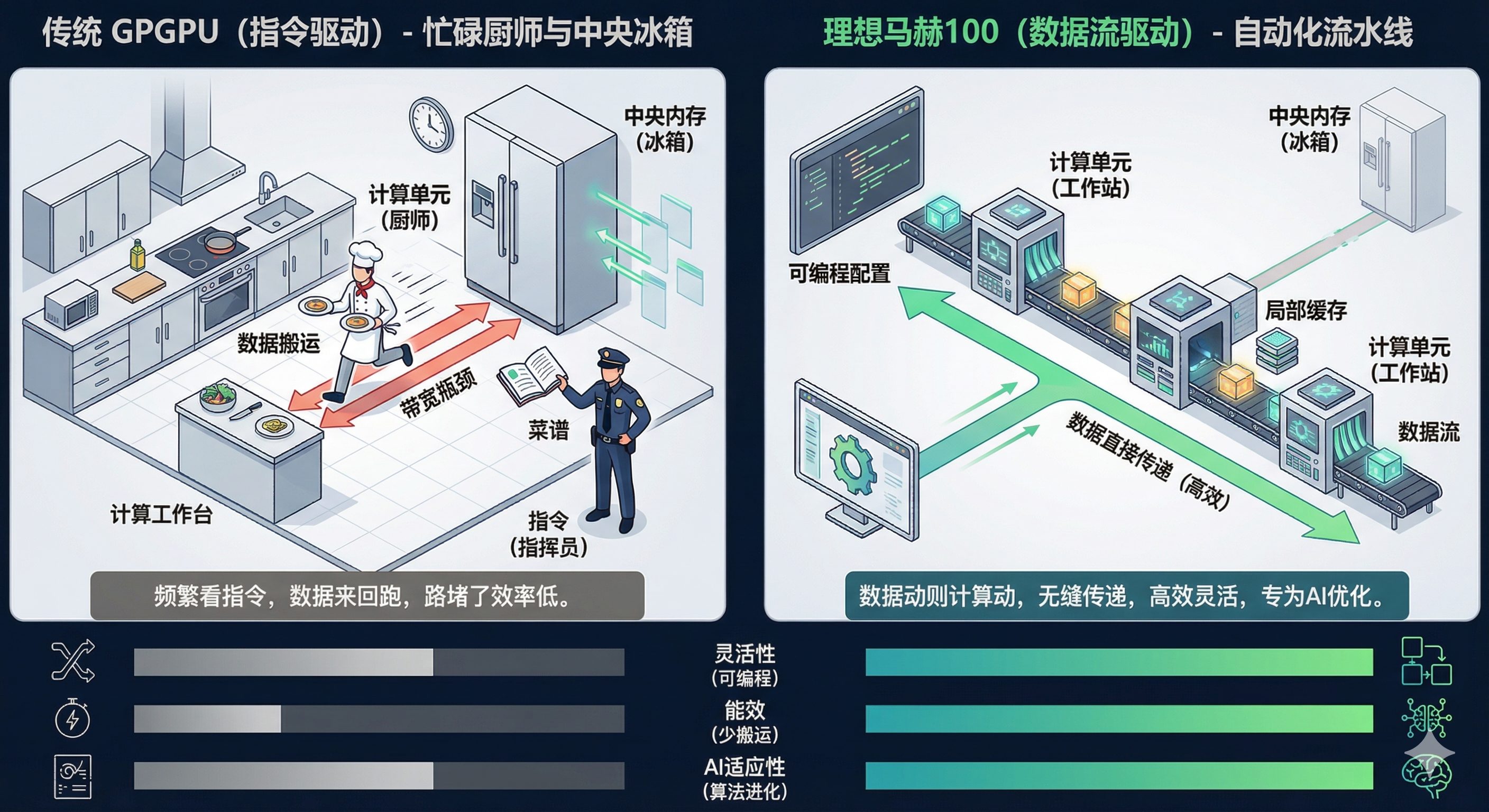 关于什么是数据流架构,用Gemini做个了厨师烧菜的比喻,并且出了个图(图二),算是非常清晰明了了~理想汽车全新一代理想l9 理想芯片拿下世界冠军级认证 理想马赫100芯片