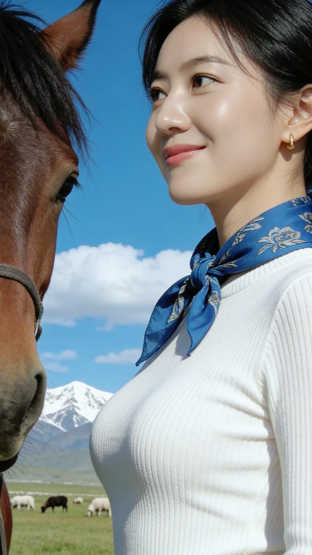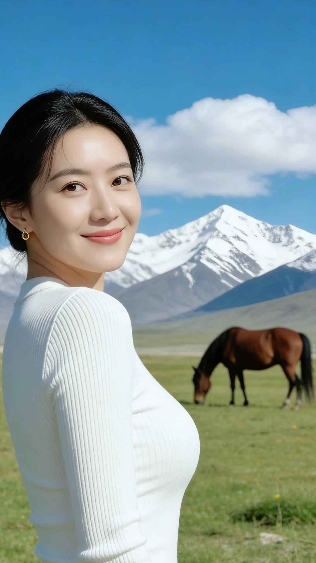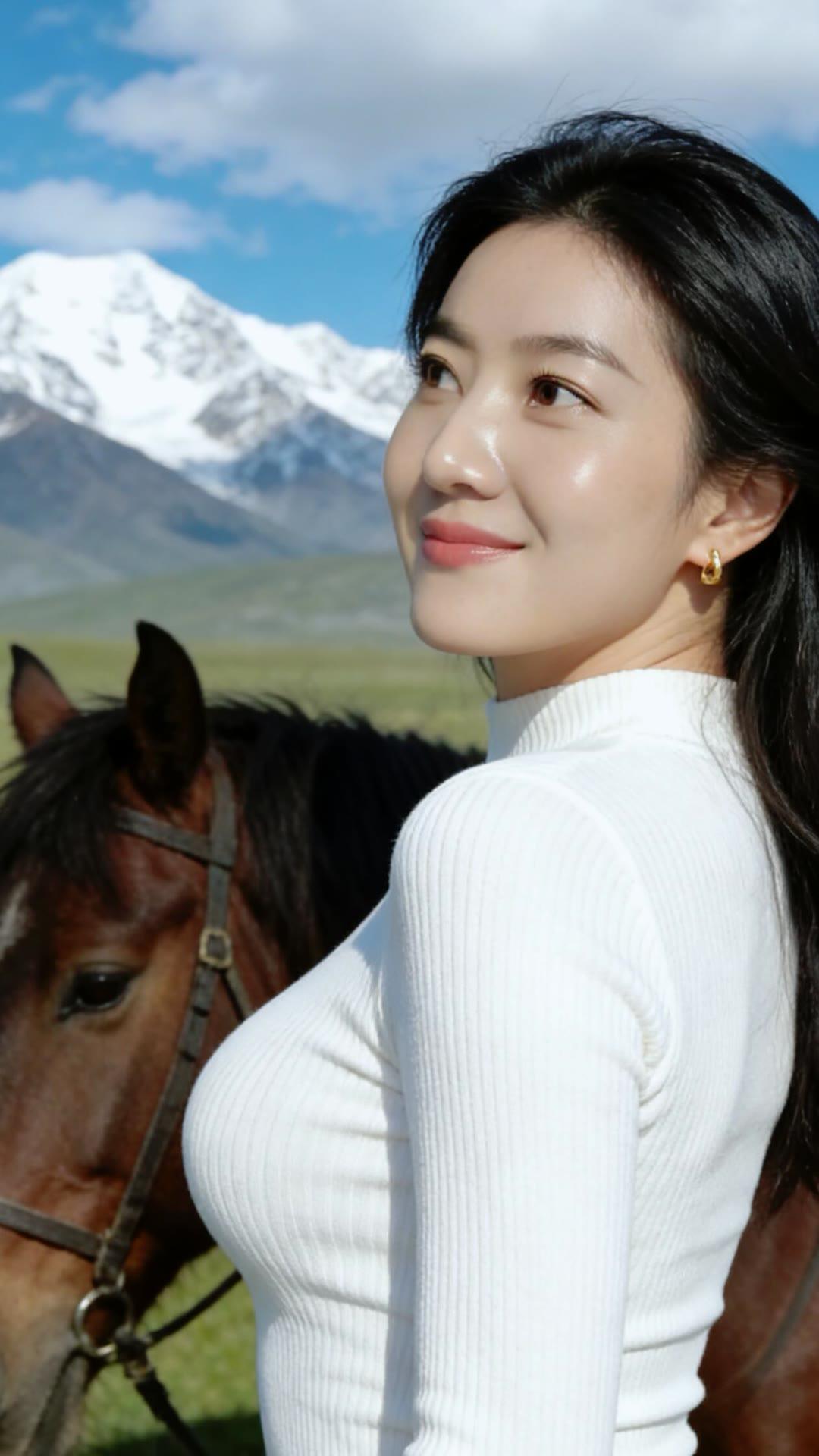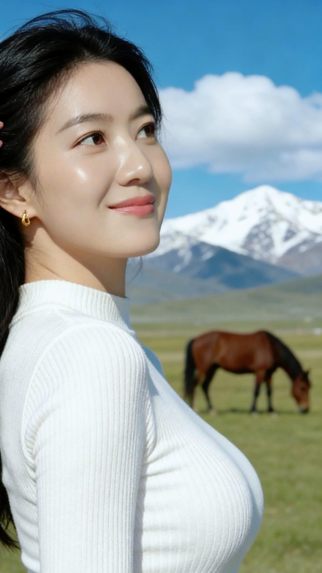 在雪山下,与马儿相伴,感受大自然的宁静与美好。