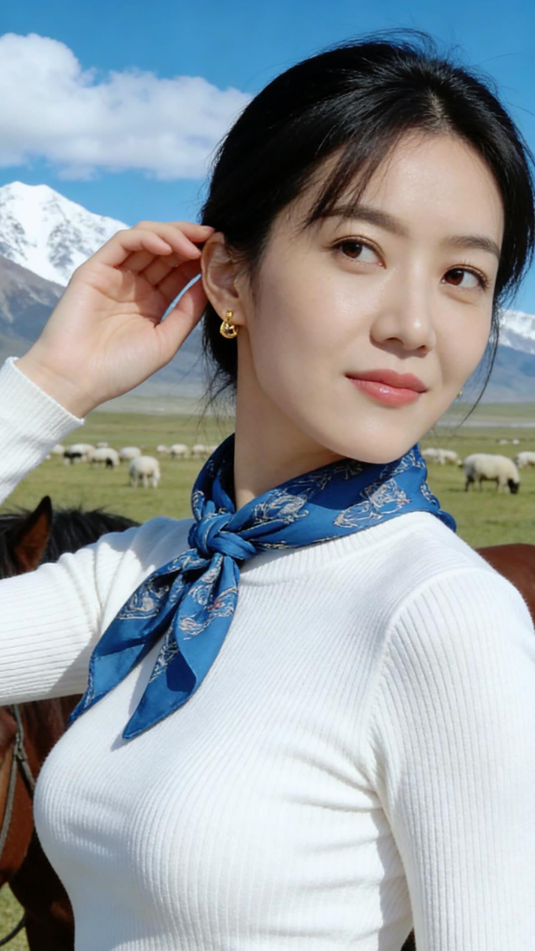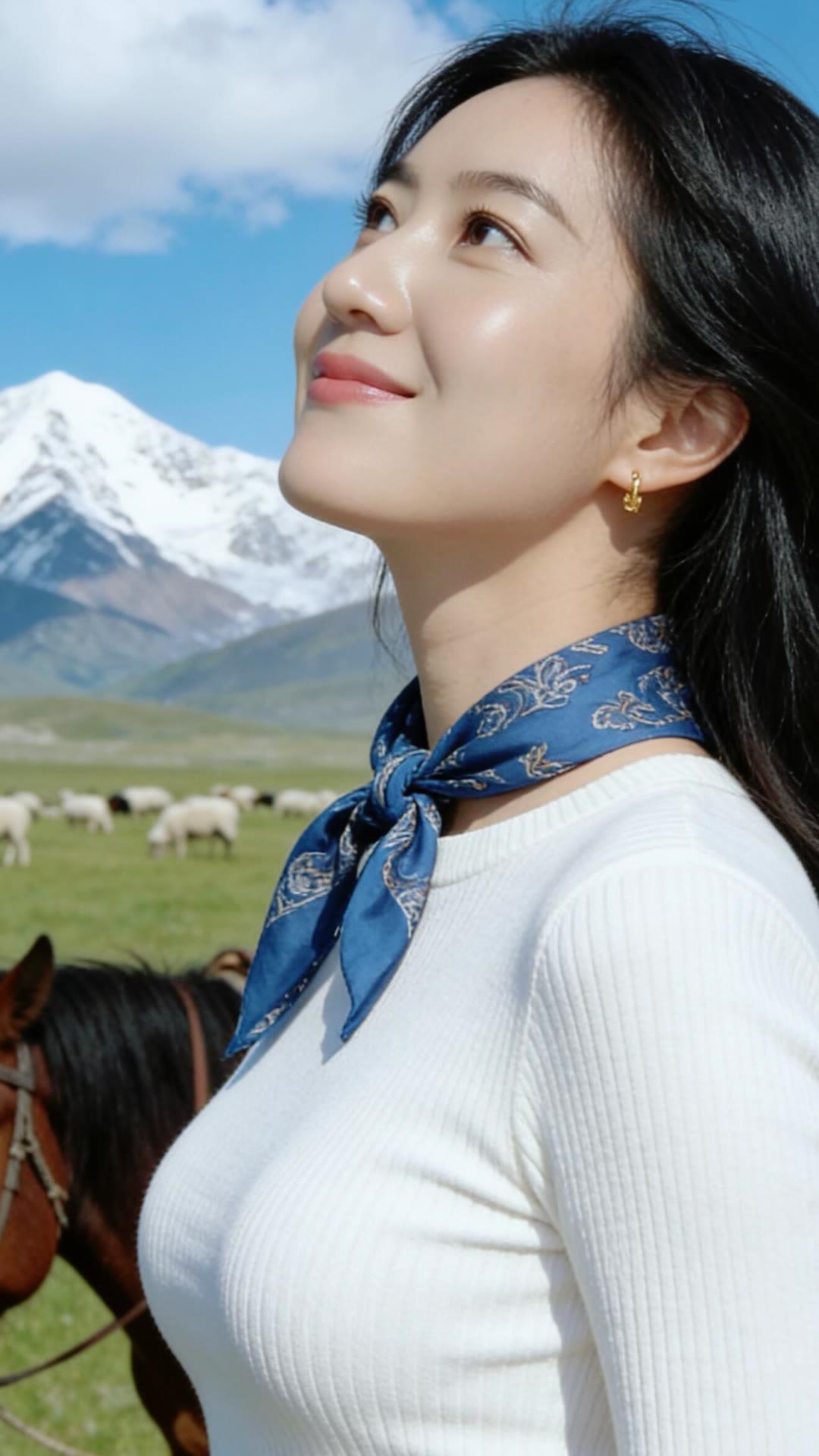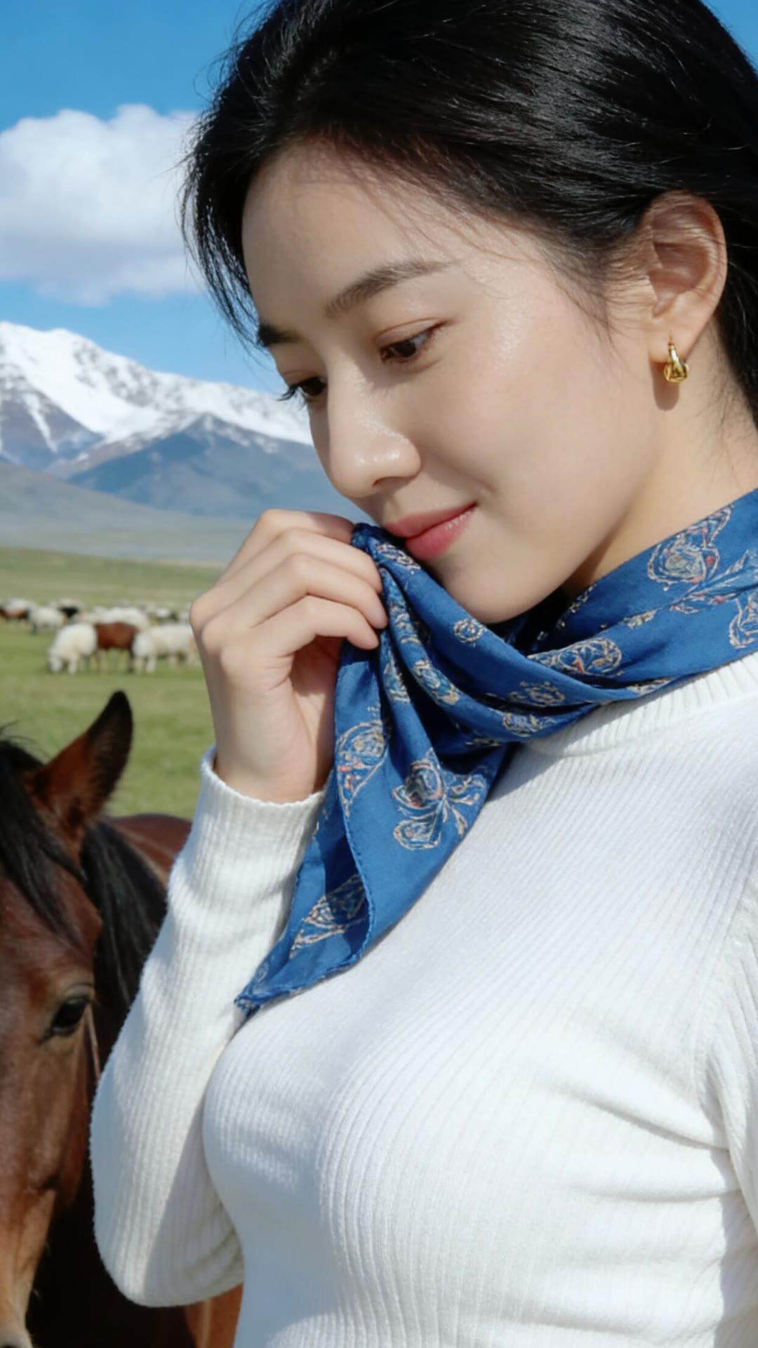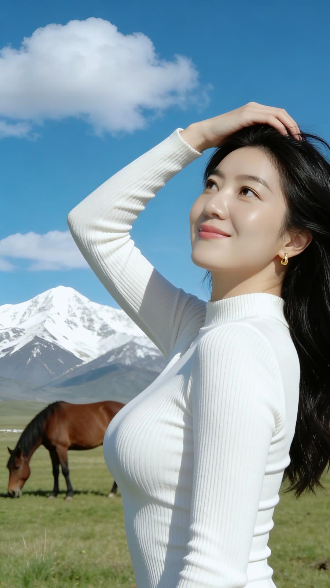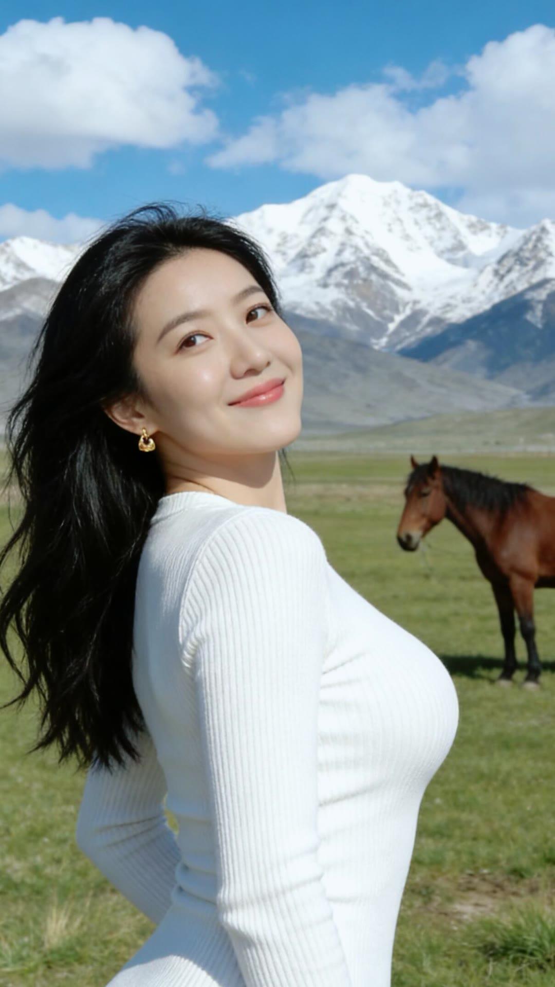 在雪山下,与马儿相伴,感受大自然的宁静与美好。
