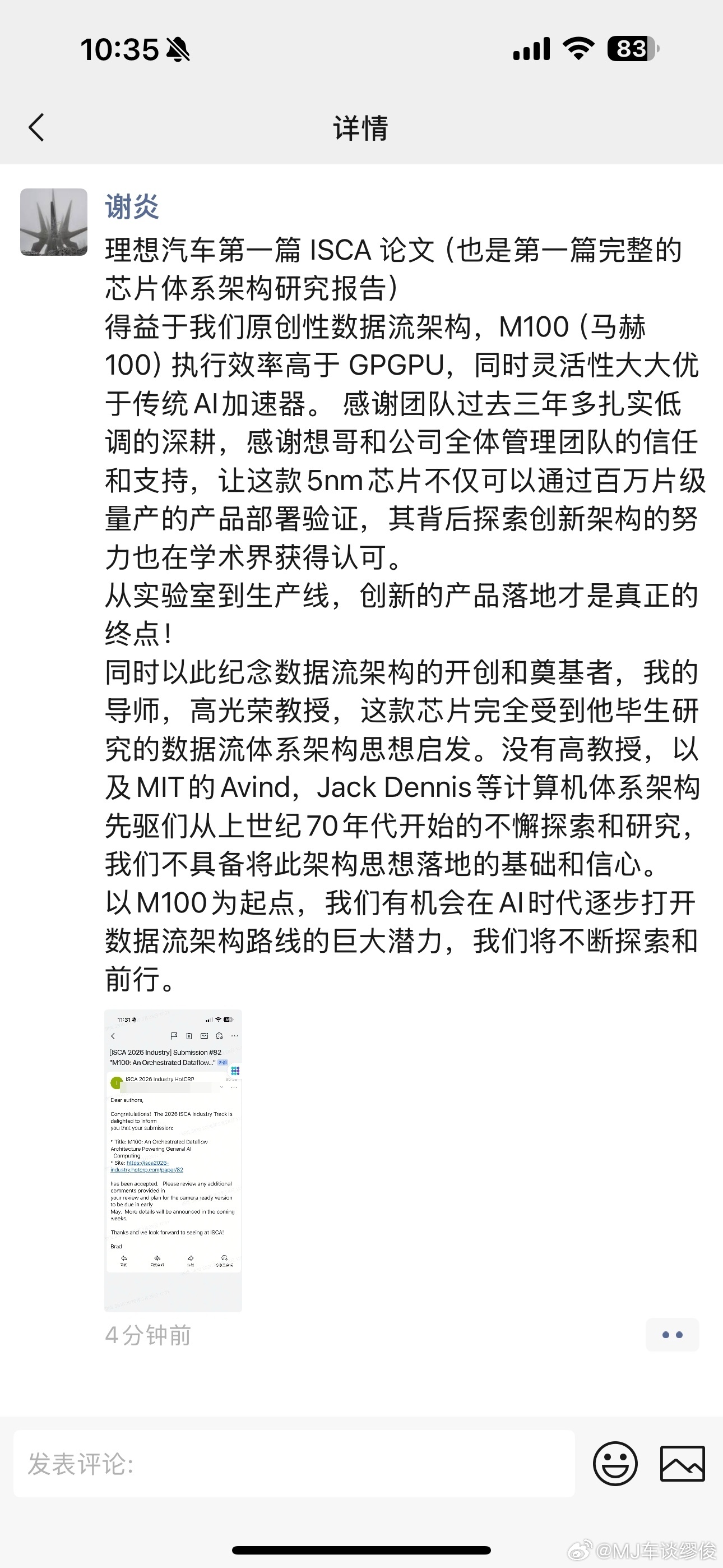 理想马赫100芯片论文入选ISCA 2026工业分区,全球首家车企! 以前看车企