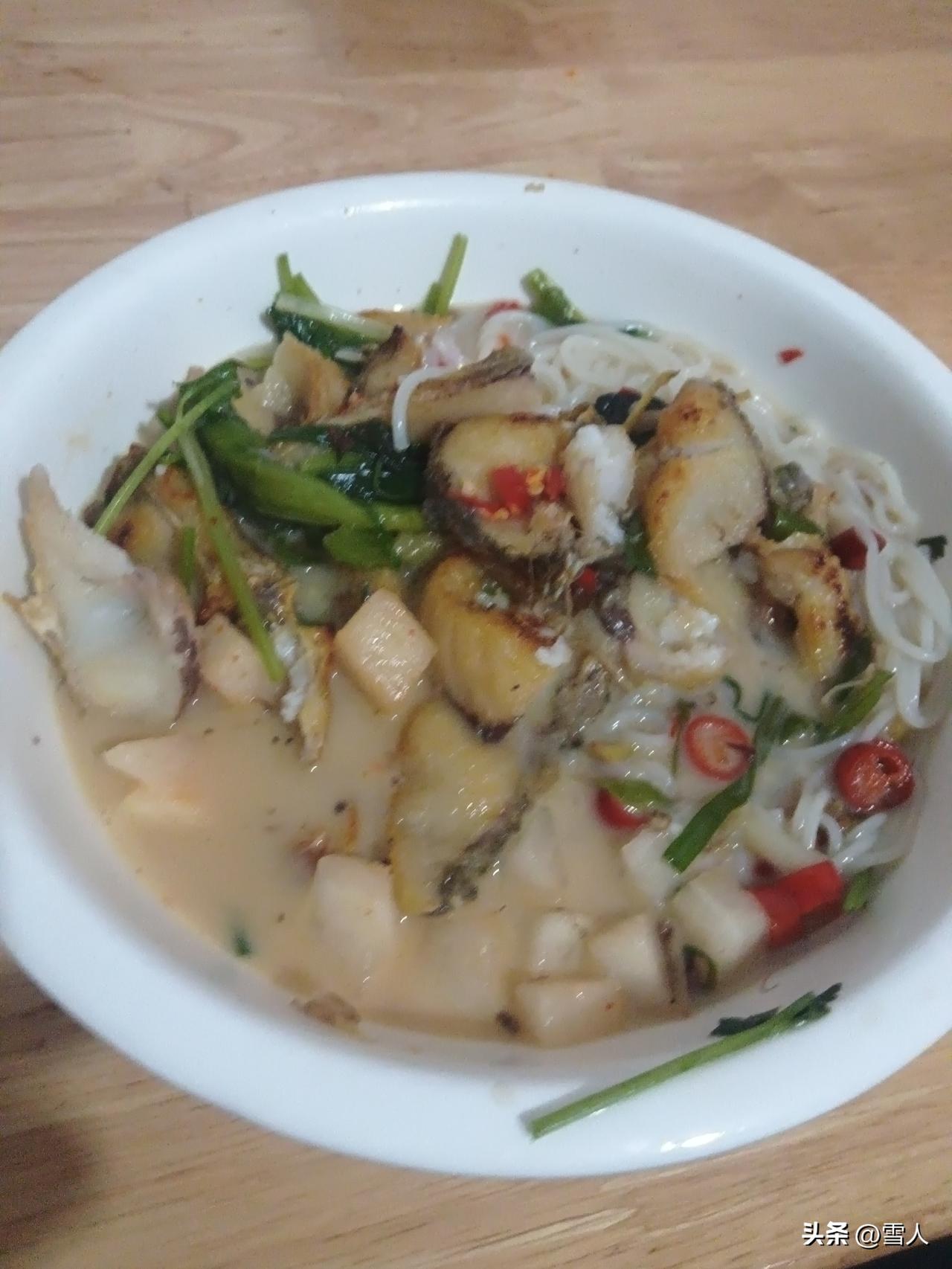 红烧鱼块配米粉:昨天零陵下暴雨,雨势来得急、去得快。塘水水升骤变,鱼儿受扰纷纷浮头透气,我顺手捞起一条鲜活草鱼,正好做一顿红烧鱼配米粉。