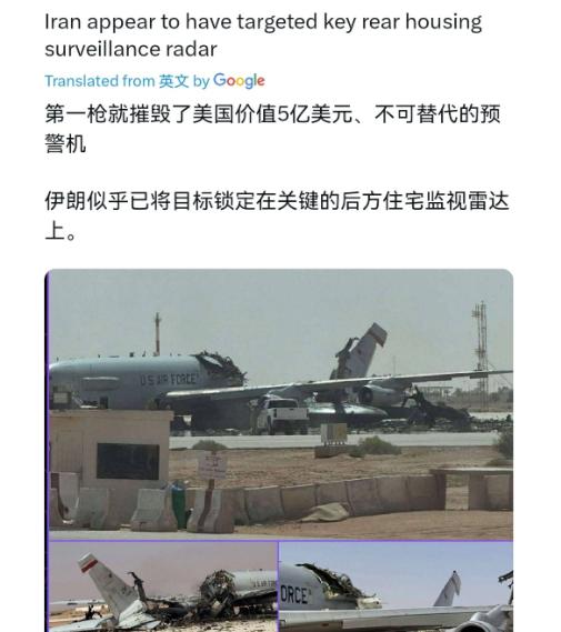 让美国最肉疼的不是造价6亿美元的E-3G大型预警机被摧毁了,最让美国肉疼的是伊朗到底是怎样做到,这种超过600公里的远距离精准打击的!其一,伊朗精准、实时、高质量的情报来自于哪里,是伊朗自己的情报,还是另有来源?其二,伊朗的导弹是如何突破美国的电子战与干扰能力的?