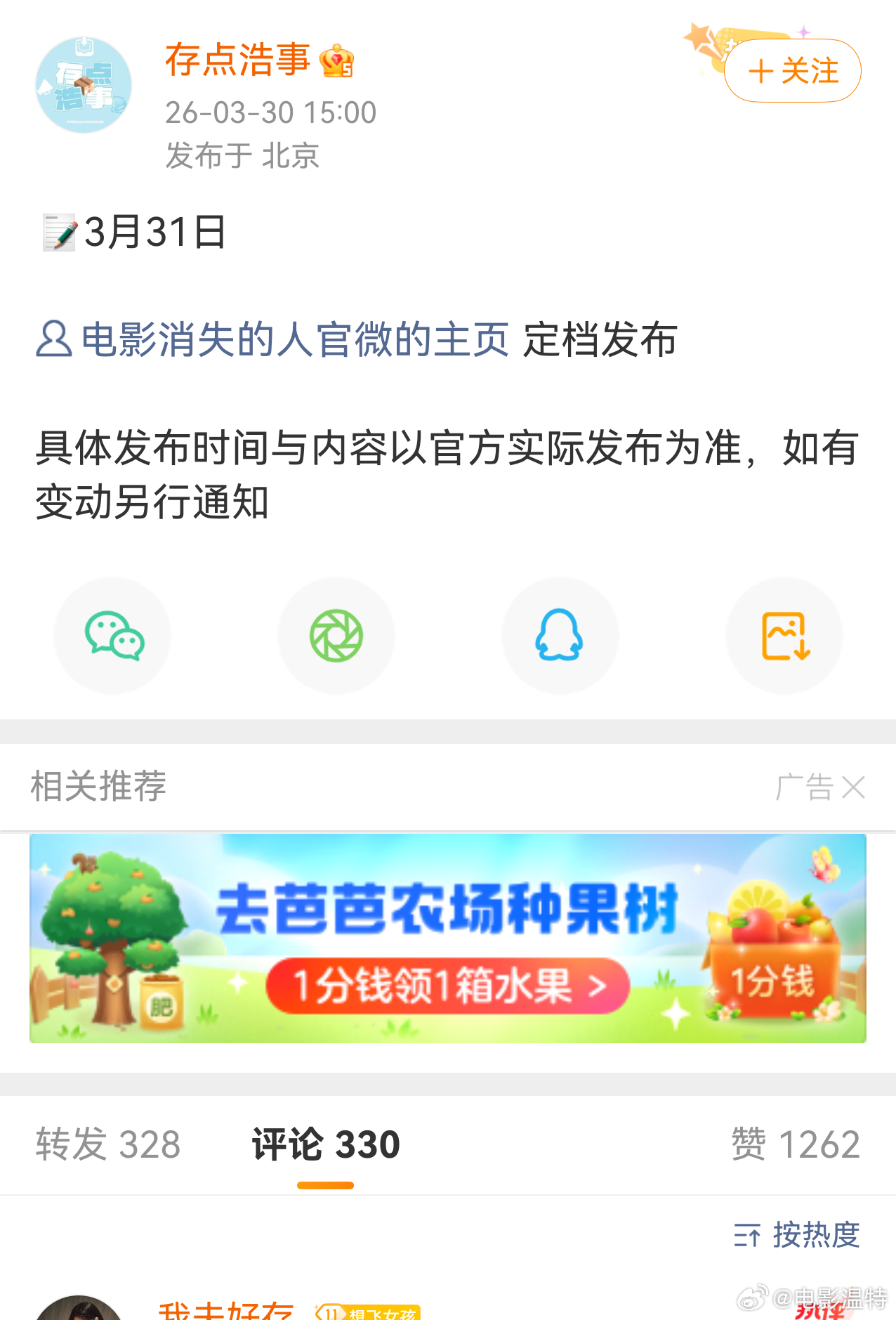听听温特怎么说 刘浩存和 毕雯珺 的对接透露明天电影《消失的人》发布定档信息。之前传言是五一档。 程伟豪导演 邱泽,郑恺,刘浩存,姜妍,毕雯珺主演。