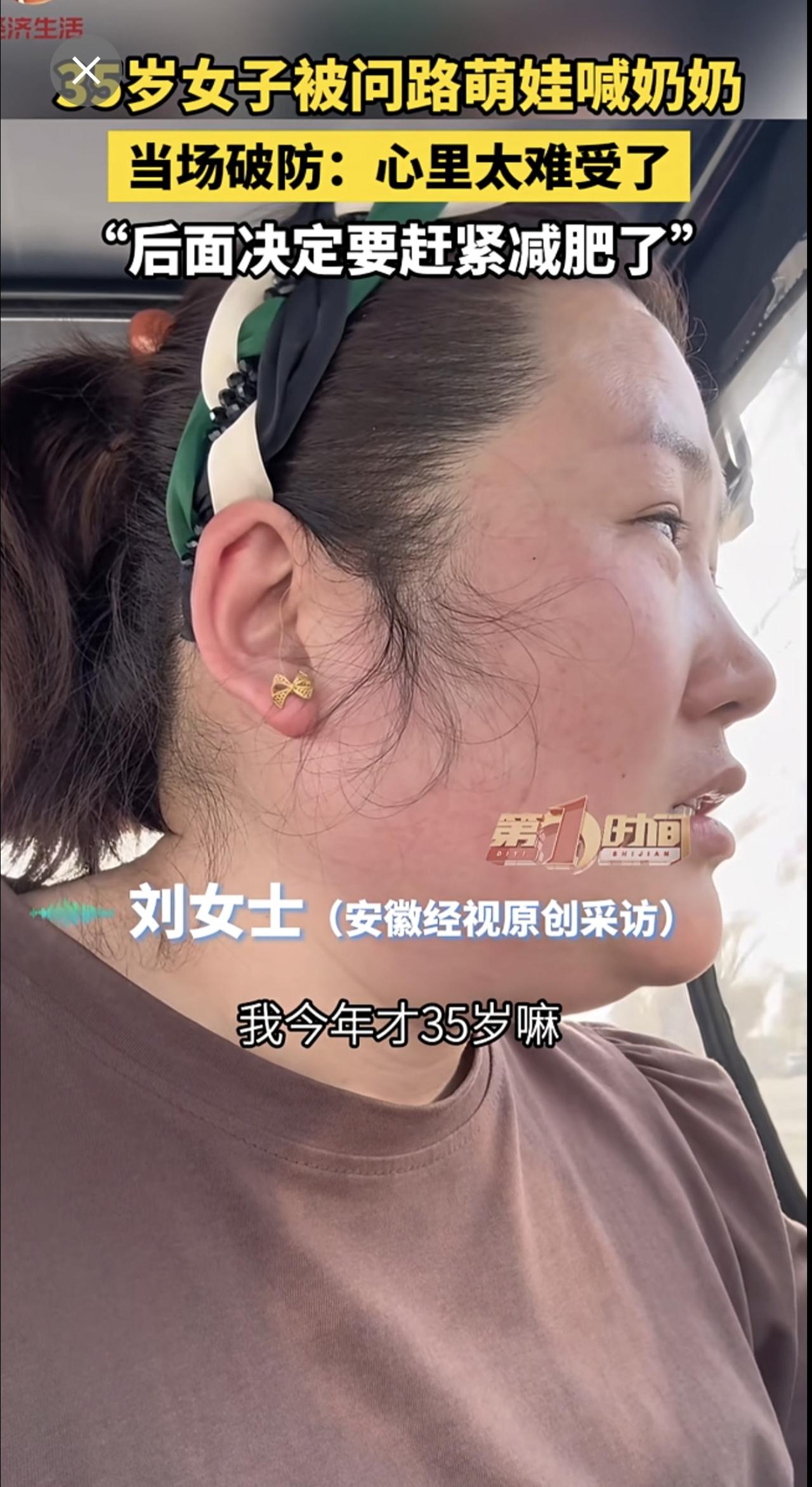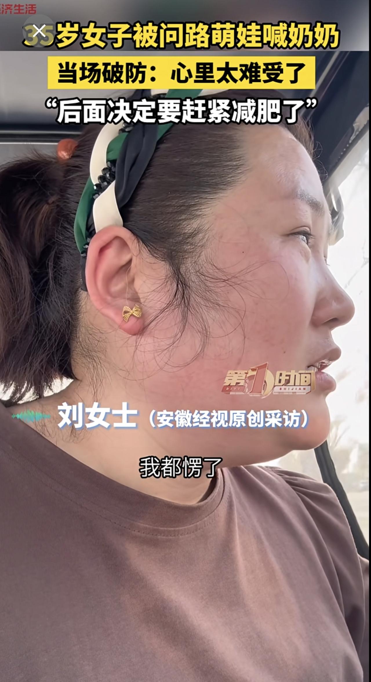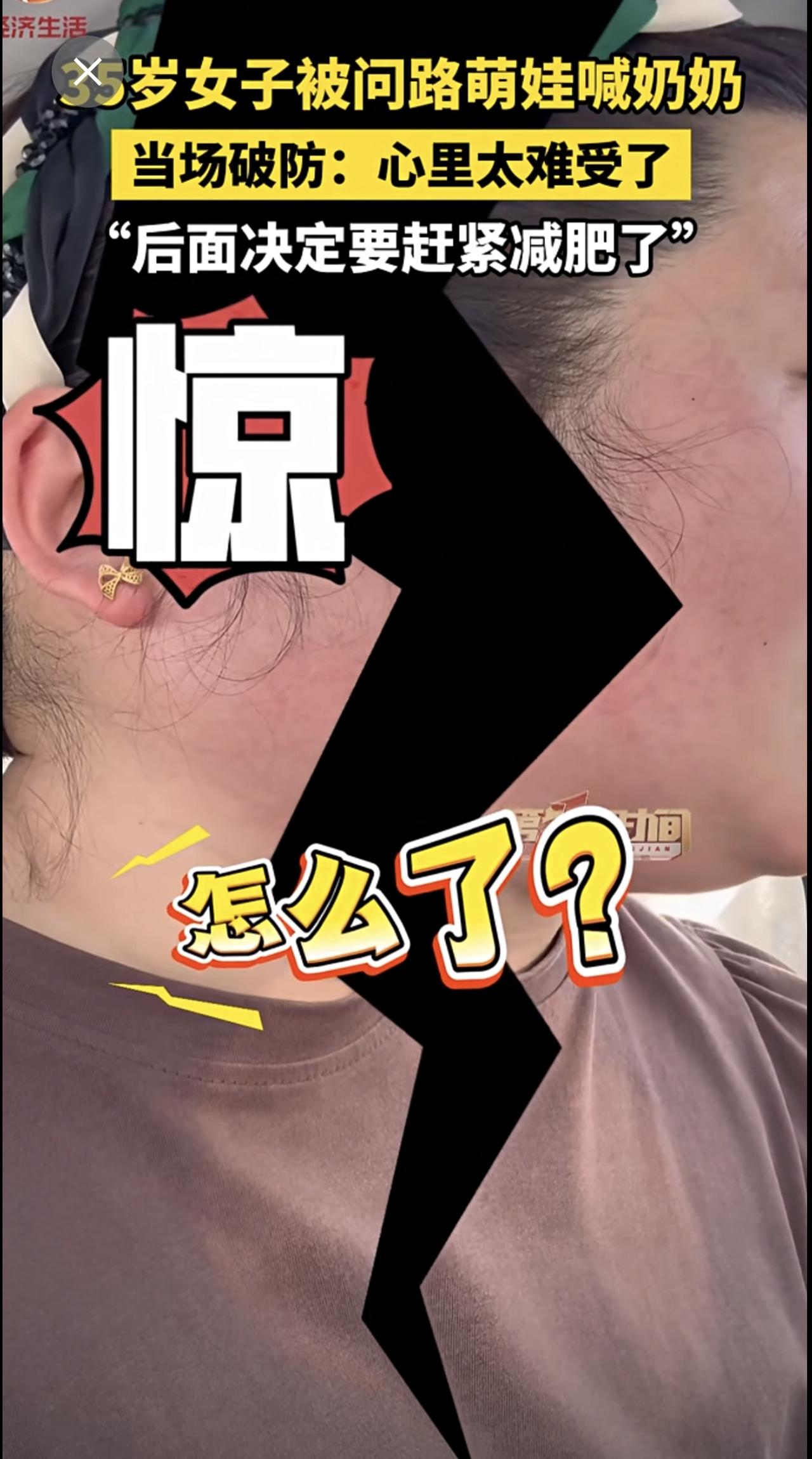 35岁女子被问路萌娃喊奶奶,当场破防:心里太难受了,“后面决定要赶紧减肥了”。