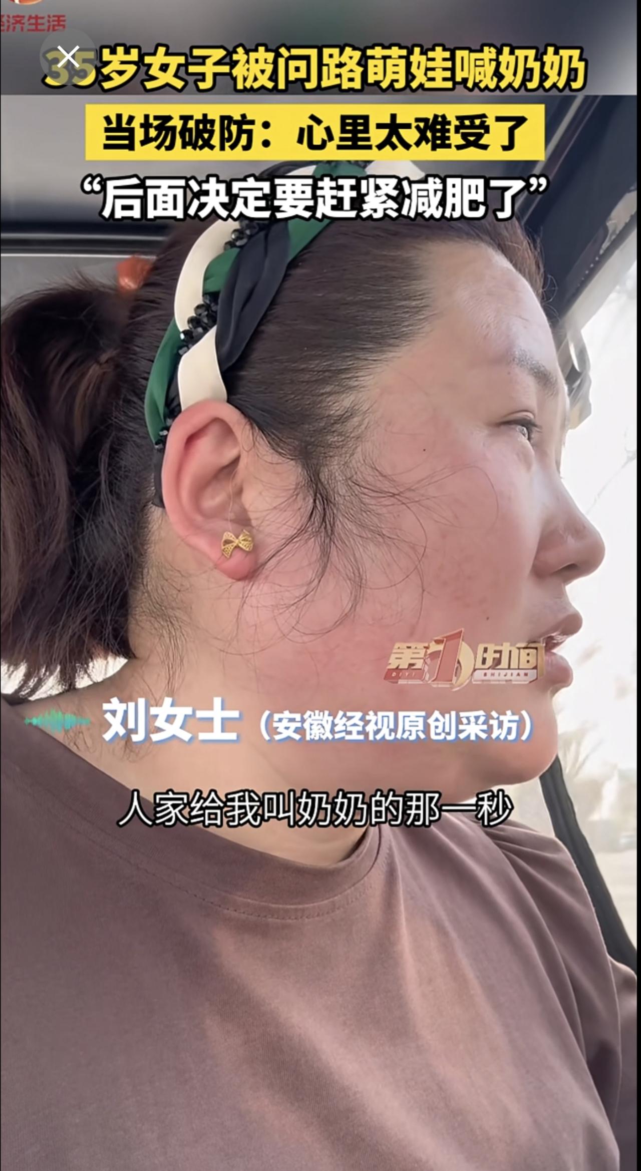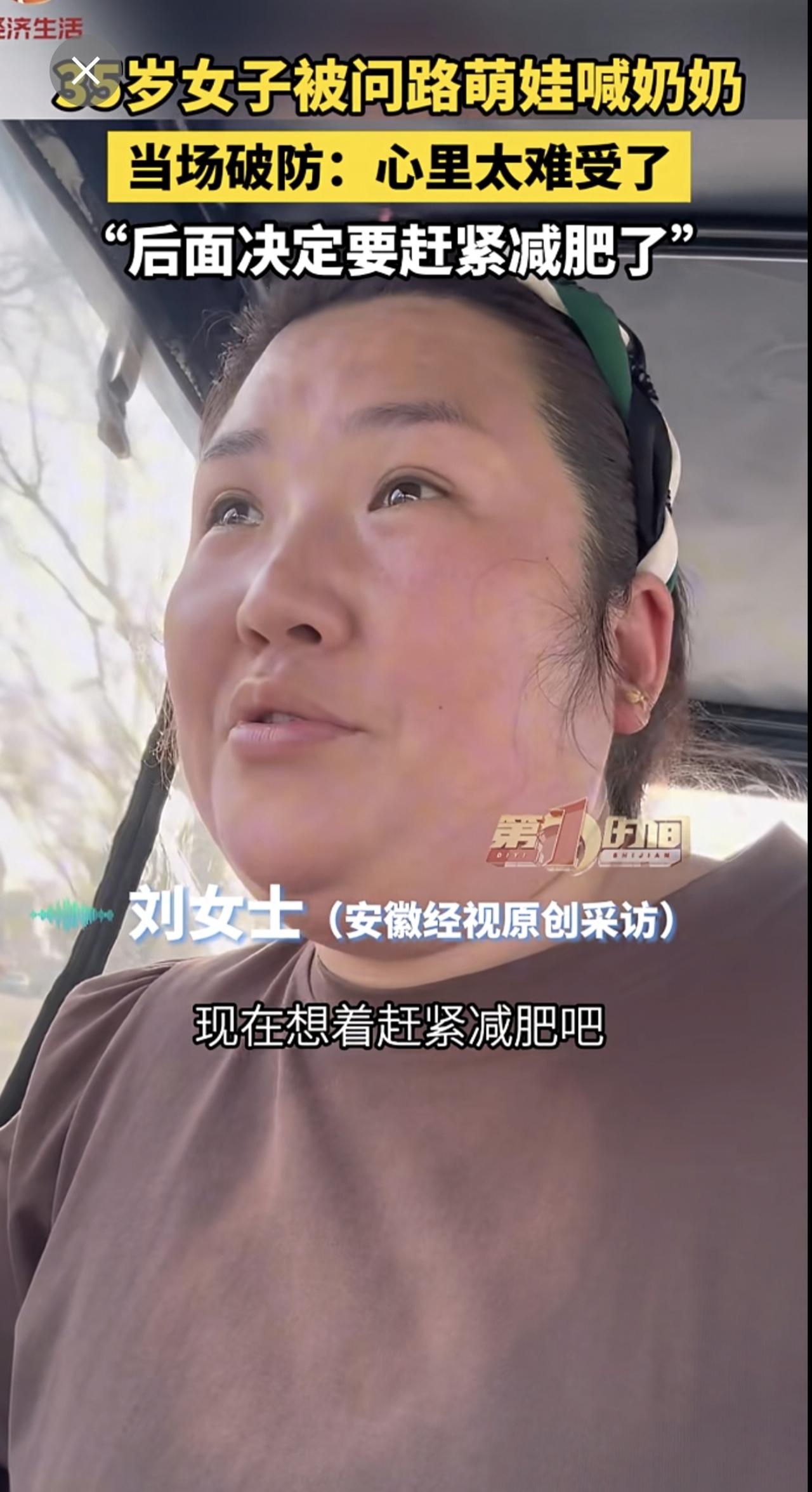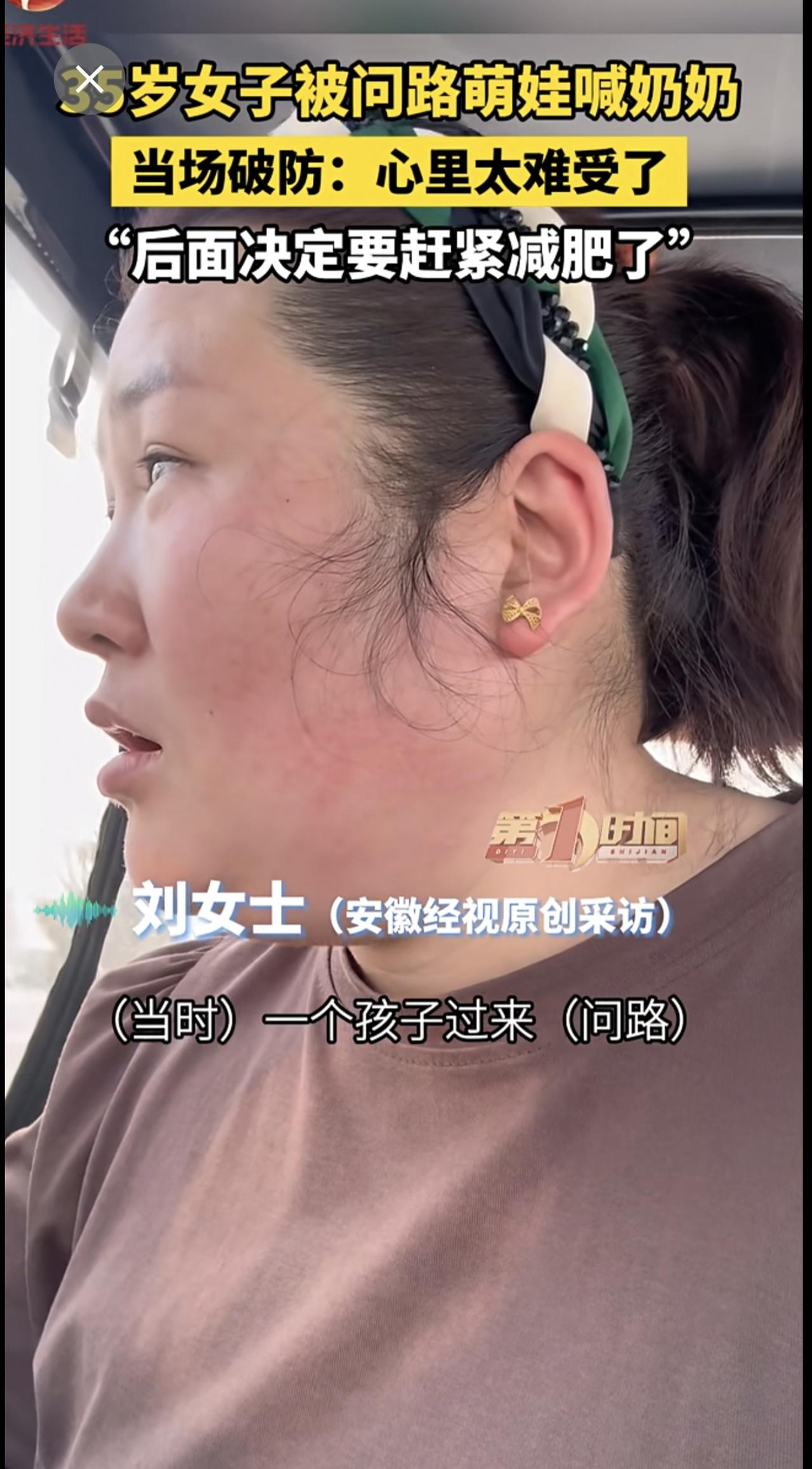 35岁女子被问路萌娃喊奶奶,当场破防:心里太难受了,“后面决定要赶紧减肥了”。