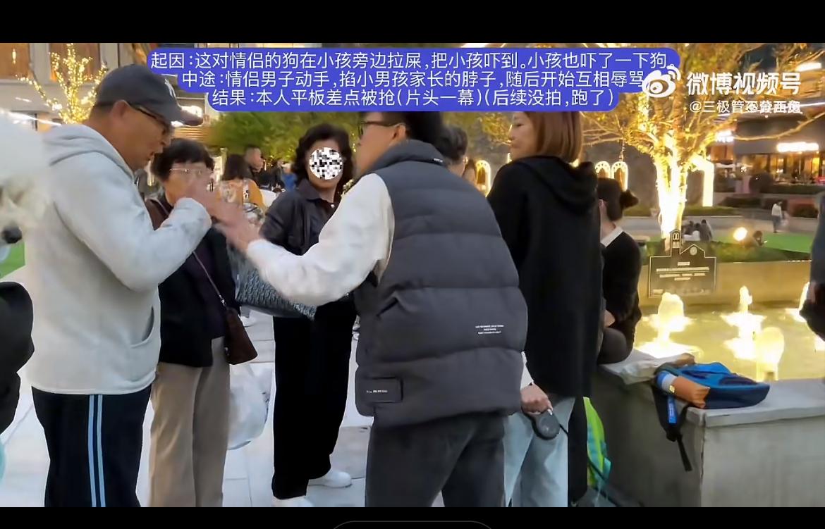 上海这对遛狗的男女引起公愤。狗狗撒尿到孩子身边,非但不道歉,还辱骂孩子的妈妈,威胁打抱不平的路人。事发 3 月 29 日某公园的广场,男女在遛狗,狗子撒尿,小孩以为狗狗要攻击他,非常的害怕。妈妈找他们理论,没想到这对男女非但不道歉,反而指责妈妈袒护他们的狗狗。 妈妈非常生气,和情侣起了争执,男的情绪失控,一把捏住妈妈的喉咙,路人看不过去,纷纷指责男子的过激行为,没想到男子却说,你们来找我啊,我不怕事,也不惹事。男孩妈妈情绪激动,和情侣大吵起来,并选择报警。年轻情侣慌了,准备开溜。路人拿 iPad 拍视频取证,没想到男子折回头就想抢人家的 iPad,态度非常嚣张。不知道后续如何处理的。