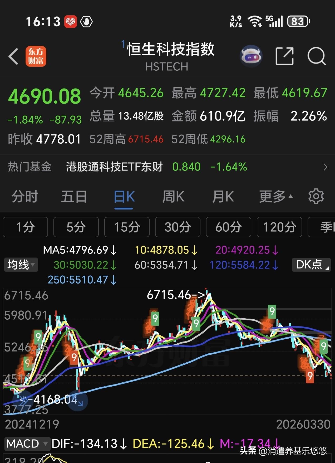 港股收盘了,恒生科技指数下跌1.84%,再创新低,120-250重要周线支撑轻松跌破,对它希望一次次破灭,做短线的,每次反弹都是减仓机会,做长线的慢慢低吸,估计要去4500点以下了。 港股通创新药💊上涨1.03%,目前到了60-250 日线压力位,明后天冲过去上看半年线压力位,空间不大。 恒生医疗保健指数跌0.32% 港股通互联网1.98% 港股科技1.72%