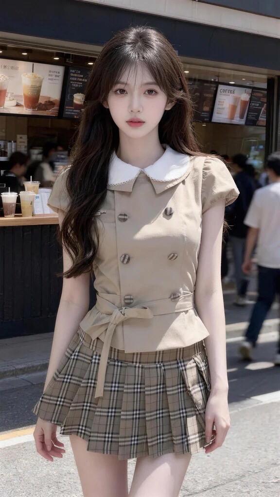 街头甜妹范 街头甜妹风 米色短裙造型 晒出你的甜美jk穿搭 jk制服街拍