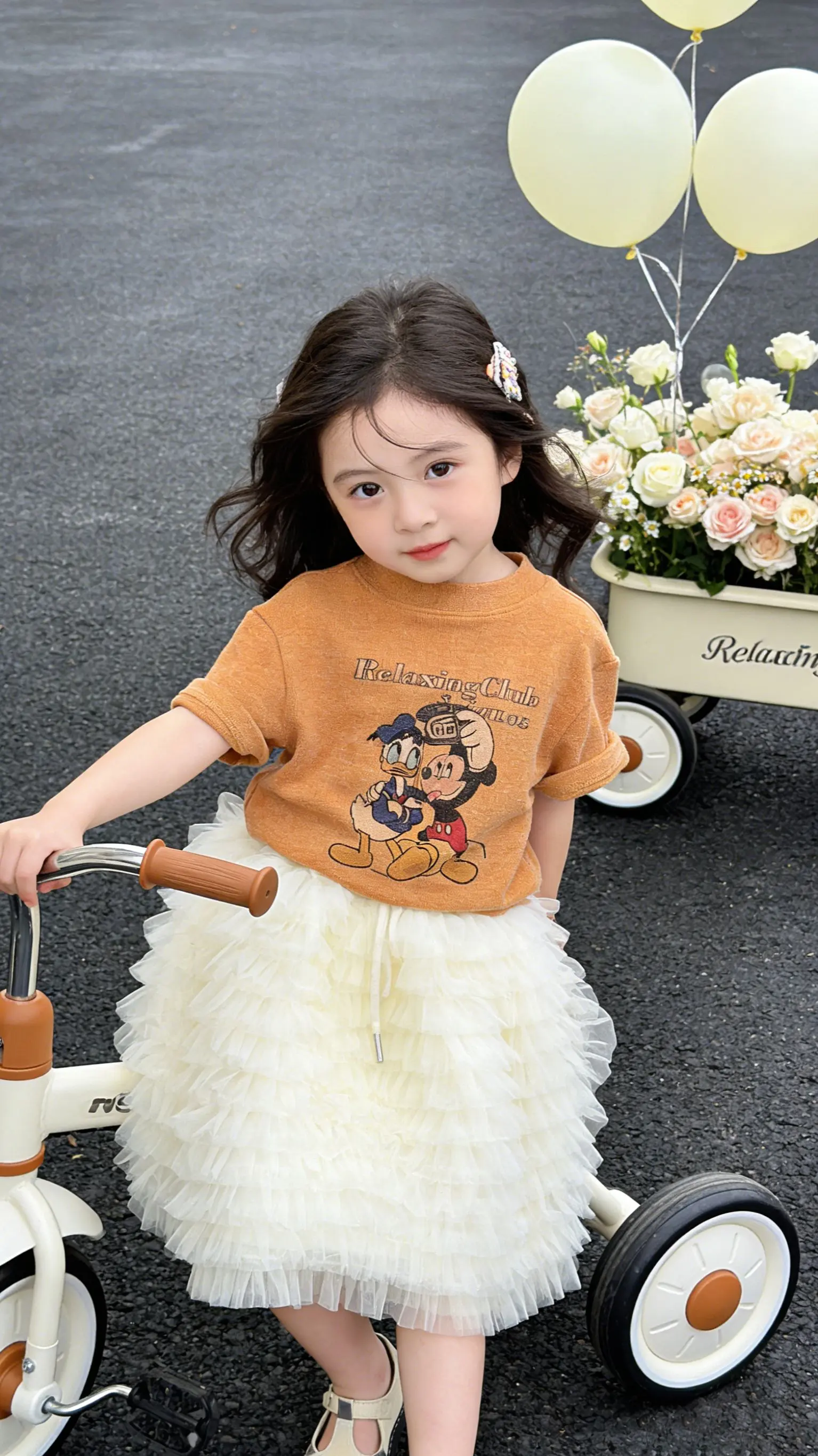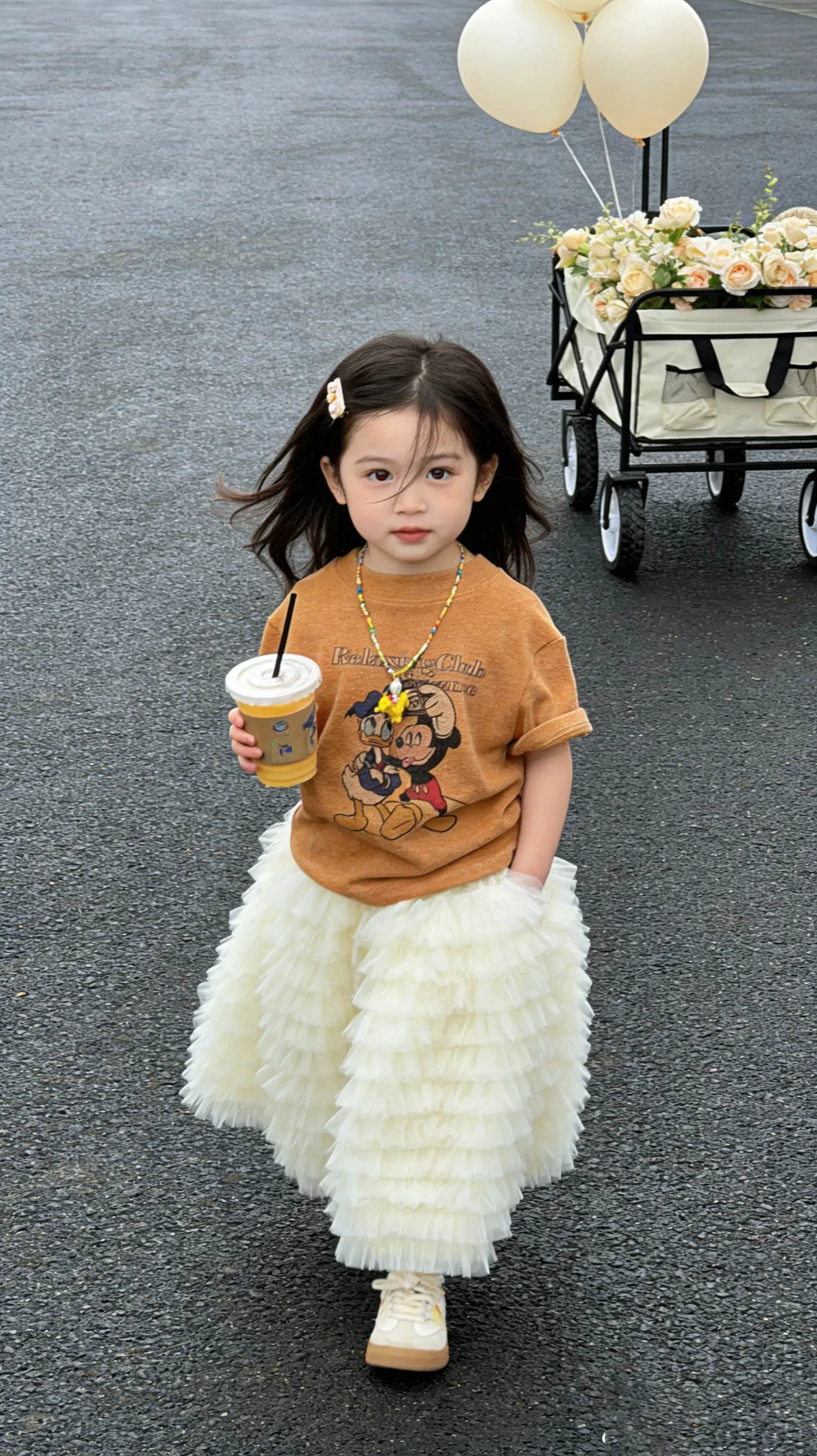 奶fufu的甜妹。焦糖色T恤叠穿奶白纱裙, 像把秋日暖阳揉进了衣服里🍂 层层叠叠的裙摆跑起来会发光, 手里的小咖啡是今日份的可爱道具☕ 连风都变得温柔啦~