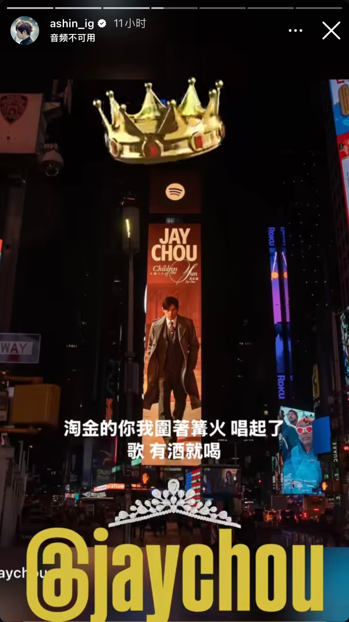 五月天阿信人真好,晒周杰伦纽约时代广场大屏,还给天王P了个皇冠加冕!