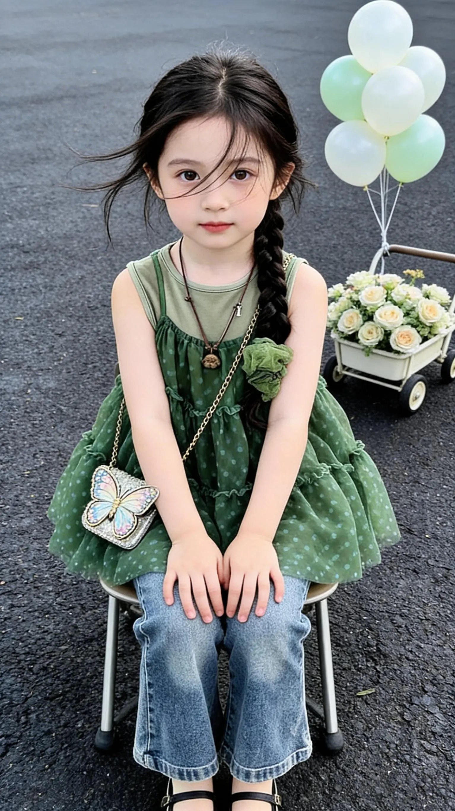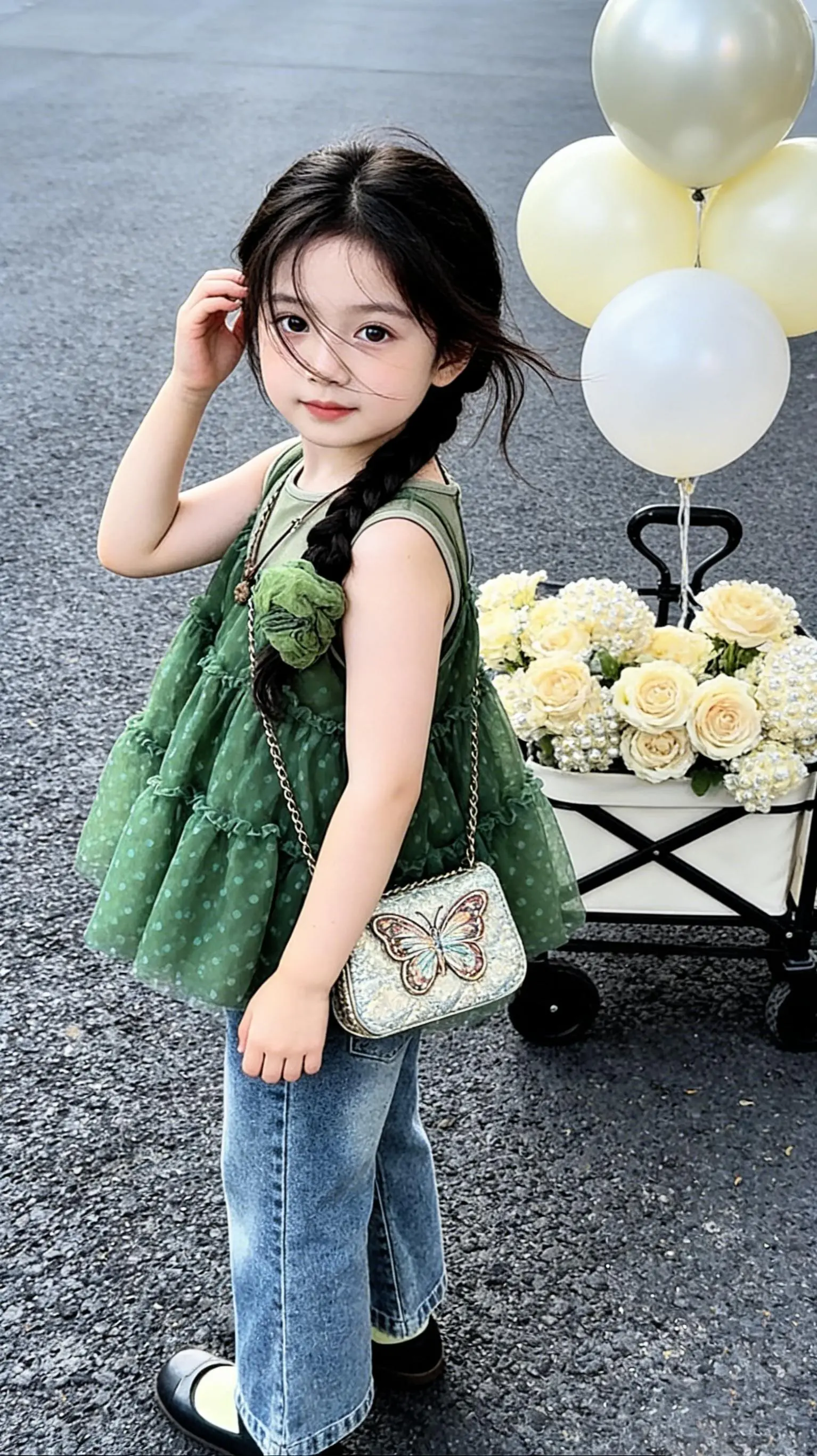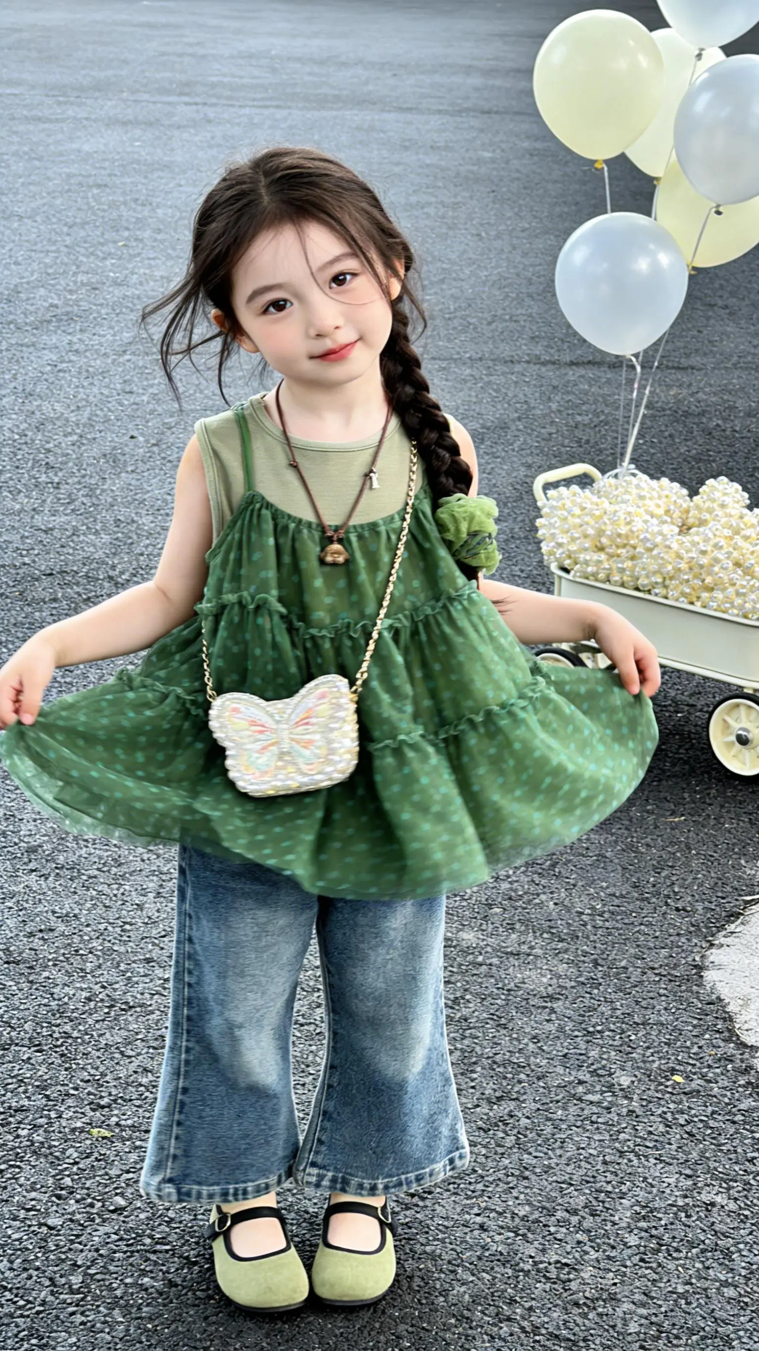 春天遛娃穿搭。创作灵感 森系叠穿舒适又出片 宝妈必入!清新绿纱+牛仔,颜值与实穿并存