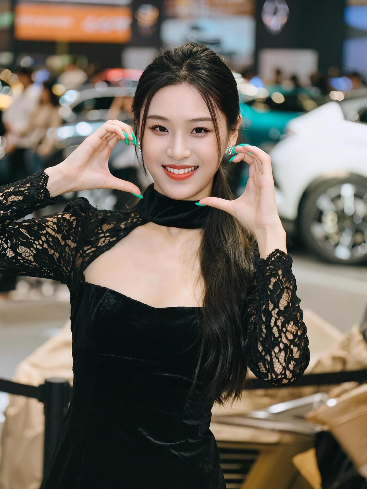 光影在她指尖流转,仿佛时间也驻足凝望。黑色蕾丝勾勒出优雅轮廓,双指轻搭成心形,是镜头前最温柔的告白。风从展台掠过,带起发梢微动,那一刻,美与科技悄然交汇。AI车展丽人照数字美学AI车展丽人照 随变ai随便玩