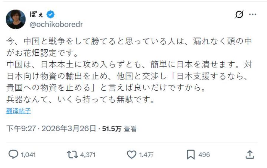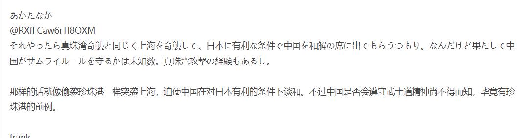 日网热议“再战论”,“只有二次战争才能让日本觉醒!”[灵光一闪][惊呆][抠鼻][抠鼻][抠鼻][抠鼻] 难以想象,现在的普通日本人对“中日战争”竟有如此评价: “日本之前输的很侥幸!”[酷拽][可怜][可爱] 近日,笔者在阅读日本网民对“中日战争”的讨论帖子后,有种“难以舒畅”的感觉。 因为笔者发现“很多日本人并不会承认自己在二战中真的输了!”,对与中国的战争如此,对与美国的也如此。 甚至于,有些日本人居然觉得“就算二战日本输了,也是输的非常侥幸!” “不服”的心态充斥在他们的字里行间,似乎“怨气”很大! 这不,日网著名大Vぼ°元(博元)在网络上发表了自己对“中日战争”的看法,他说: “现在,认为和中国打仗能赢的人,毫无疑问脑子里都是花田认定的(意味单纯、天真)。 中国即使不入侵日本本土,也能轻易打败日本。 因为只要停止对日本的物资出口,和其他国家交涉,说‘支援日本的话,就停止对贵国的物资’就可以了。 至于武器什么的,怎么拿也没用!” 这句话被日本网民集体批判,有日本网民直接发文称: “那样的话(我们)就像偷袭珍珠港一样可以突袭上海,迫使中国在对日本有利的条件下谈和。不过中国是否会遵守武士道精神尚不得而知!” 笔者看完懵了,完全没想到这帮小日本居然会有如此可笑的想法! 小日本真是“亡我之心不死”啊! 在寻找日本网民为何会有这种心态的过程中,笔者读到了这样一句同样是日本网民的发言,他说: “现在与中国开战必输无疑!但遗憾的是日本之前只失败过一次!可能日本也需要像德国一样经历两次惨痛的失败之后才会真正的觉醒!” --------------------------------- 哦,笔者这下终于懂了![灵光一闪][呲牙][赞][灵光一闪][呲牙]