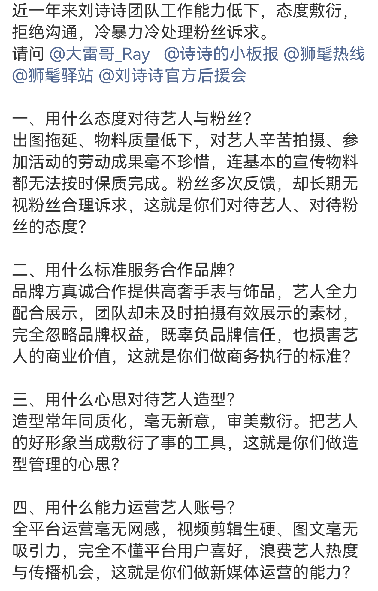 刘诗诗粉丝站联合发文 刘诗诗粉丝站联合发文,督促工作室改进工作,保障艺人权益,支持!
