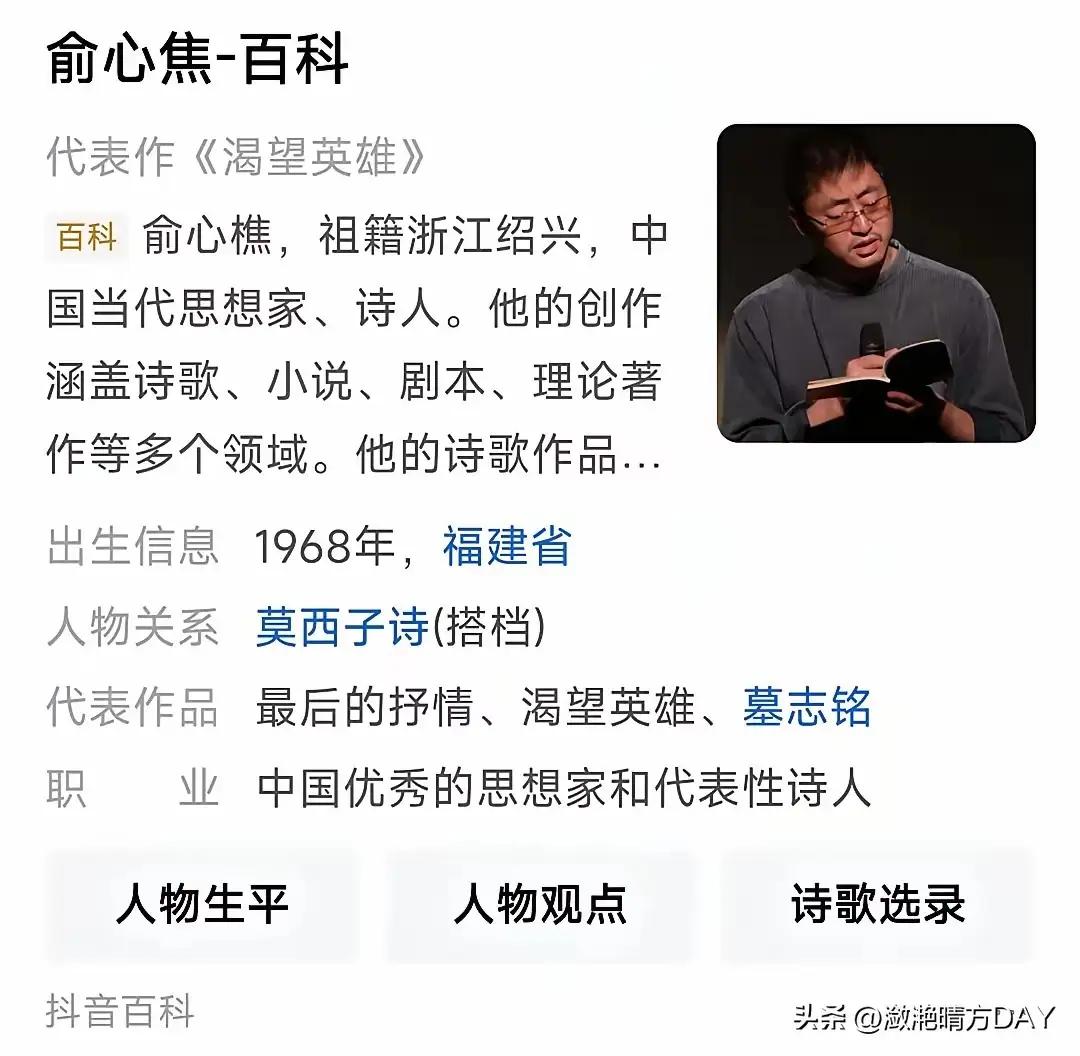 福建诗人俞心樵“爱国过猛易猝死”言论引爆争议!网友扒出其强奸前科怒斥:爱美国就直说,别玷污爱国二字! 最近,诗人俞心樵的一段微博发言在网络上炸开了锅。他一边声称自己“是伟大的爱国主义者”,一边又调侃“爱国过猛容易猝死”,甚至直言“动不动就爱美国”。这种矛盾言论瞬间点燃了网友的情绪,有人嘲讽其“虚伪至极”,也有人追问:爱国难道能像开关一样随意切换? 翻看俞心樵的履历,他的诗歌作品《最后的抒情》《墓志铭》曾让不少人动容,文字间透着理想与深沉。但艺术归艺术,人品归人品。有网友扒出他1999年因强奸罪被判刑的历史,刑满释放后辗转中美两地。这样的背景,让他的“爱国宣言”显得格外刺眼。 伟人曾指出:“立场有问题时,知识越丰富就越坏。”俞心樵的言论恰恰印证了这一点。当一个人将爱国当作表演的工具,用华丽辞藻掩盖内心的摇摆,那么所谓的“爱”也不过是空洞的口号。真正的爱国,从来不是嘴上功夫,而是融入血脉的认同与行动。 更让人唏嘘的是,部分网友竟为其辩解,称“艺术应脱离道德评判”。但历史告诉我们,缺乏底线的才华,往往成为毒害社会的利器。从强奸犯罪到言论争议,俞心樵的人生轨迹仿佛一场荒诞剧,而观众们却在思考:我们该以怎样的眼光看待这样一个“矛盾体”? 事实上,公众的愤怒并非针对艺术表达,而是痛恨虚伪与双标。当一个人享受着祖国的资源,却把“爱美国”挂在嘴边,甚至调侃爱国者的真挚情感时,这种轻佻已然伤害了无数默默奉献的普通人。爱国不是生意,更不是投机者的遮羞布。 透过现象看本质,俞心樵事件折射出当下社会对“爱国”定义的深层焦虑。在信息爆炸的时代,每个人都能发声,但如何辨别真心与假意?或许答案很简单:听其言,观其行。那些用行动守护土地的人,从来不会忙着标榜自己“伟大”。 网友的吐槽如潮水般涌来:“强奸犯谈爱国,简直讽刺!”“爱美国就去吧,别蹭热度!”这些声音虽然尖锐,却代表了一种朴素的价值观:爱国是神圣的,不容玩弄。而俞心樵的“行为艺术”,最终只让自己成了笑话。 (来源:百度百科、抖音百科及网络评论整合) 爱国争议 文人双标
