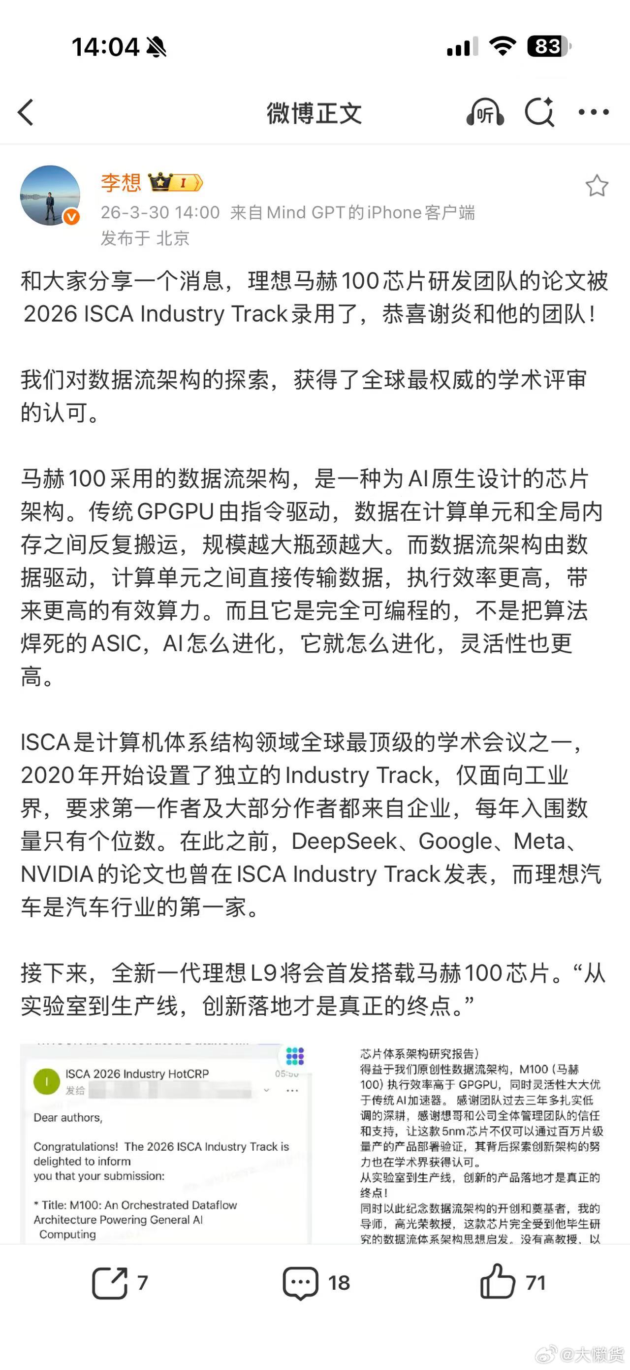 补一个信息 来自于第三方 理想汽车理想l9 livis理想马赫100芯片懒博小课