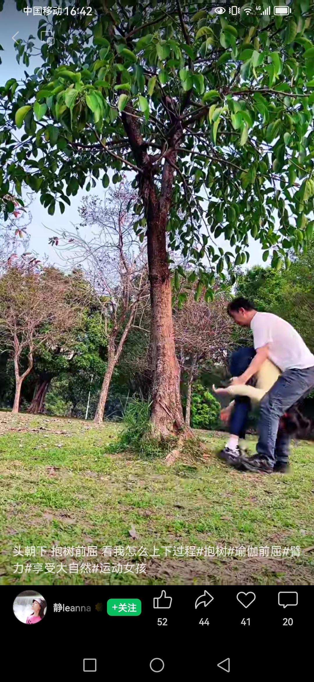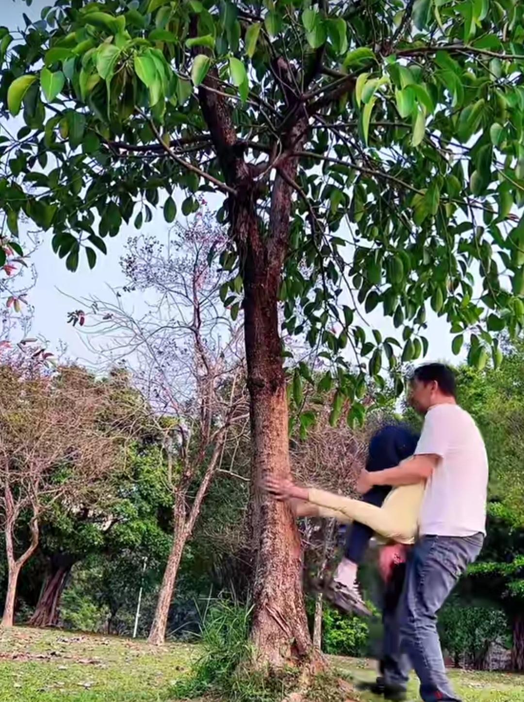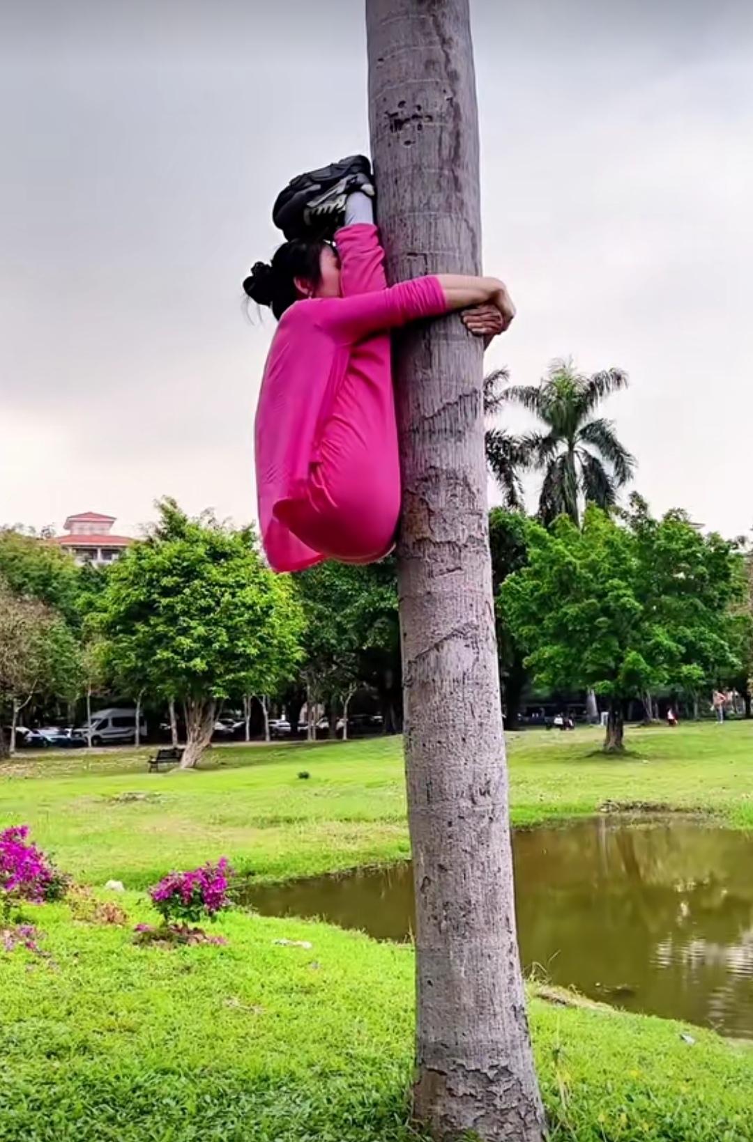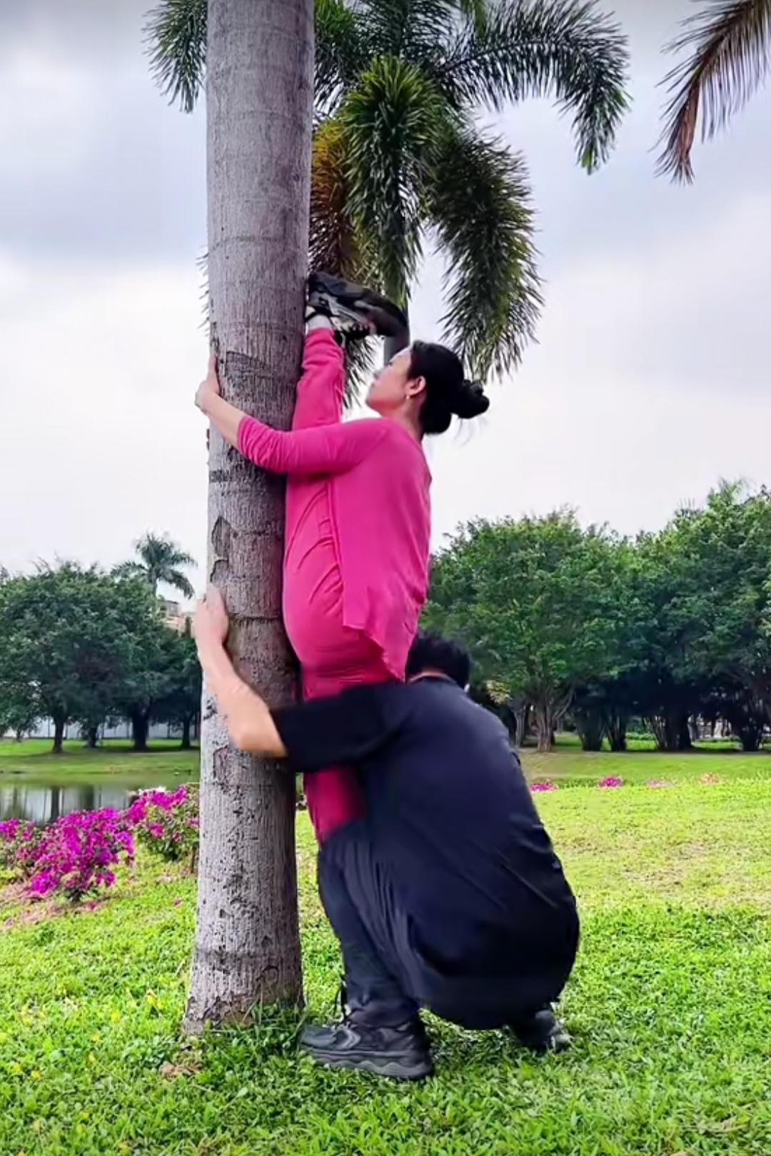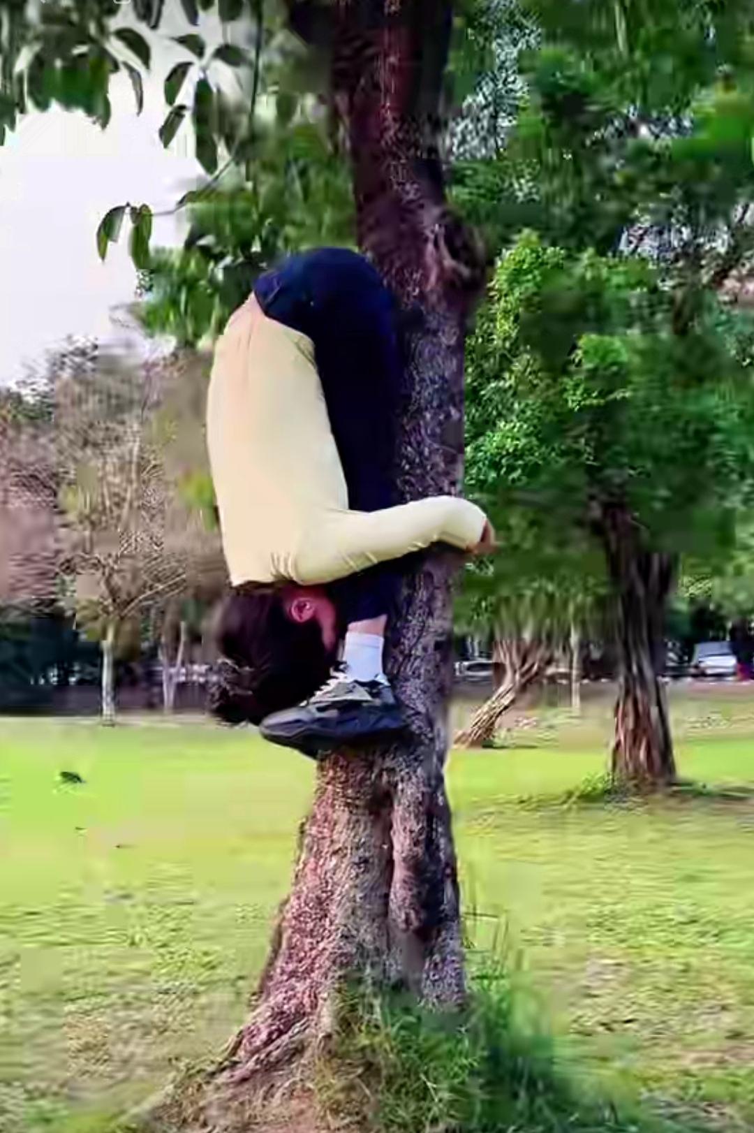 头脚紧紧贴在树上,向上(或向下)悬吊着,以这种奇特方式练习瑜伽的场景,要是视频博主仅展示上树的片段,乍看之下,着实令人觉得不可思议。这是时候会不会去想:她们是如何上去的,又怎样下来呢?我想,大家有可能会和我一样,心中满是这样的疑问。 若不是看到另一段视频画面,还真不知道是有人在一旁协助。就说头脚向上抱树的场景,练瑜伽的人得先将一只脚朝上,另一只脚立于地面,助手再用胳膊托起她的臀部,助她上树;待她想下来时,再将她抱下。而头脚同时向下抱树的场景,助手则直接按照练瑜伽者想要的姿势将她抱上树,下来时同样是抱着下来。 最后,我想问问大家,当看到她们练瑜伽上树的画面时,你们心中会作何感想?欢迎在评论区分享! 瑜伽倒立运动