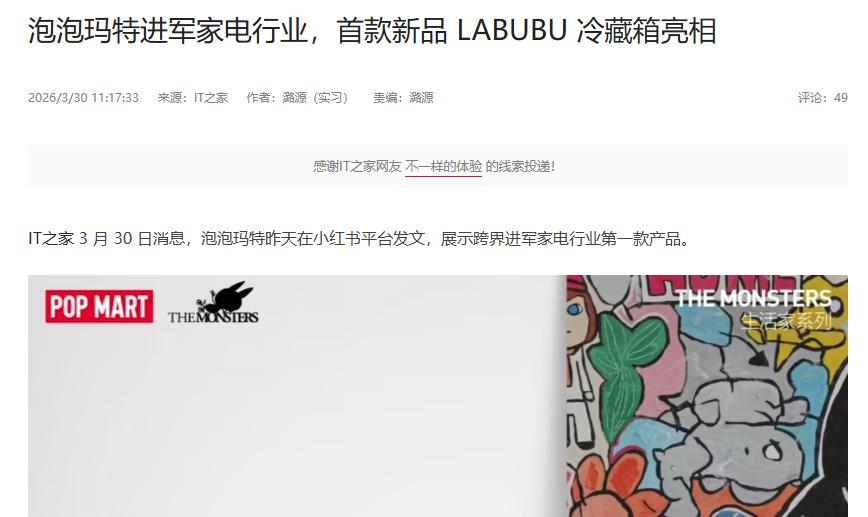 如何看待泡泡玛特进军家电行业 据了解,近日泡泡玛特公布了团队新品——“泡泡玛特冷藏箱”。 值得一提的是,除本次推出的冷藏箱以外,此前还有知情人士表示泡泡玛特的小家电矩阵将涵盖电水壶、咖啡机、电动牙刷等产品。