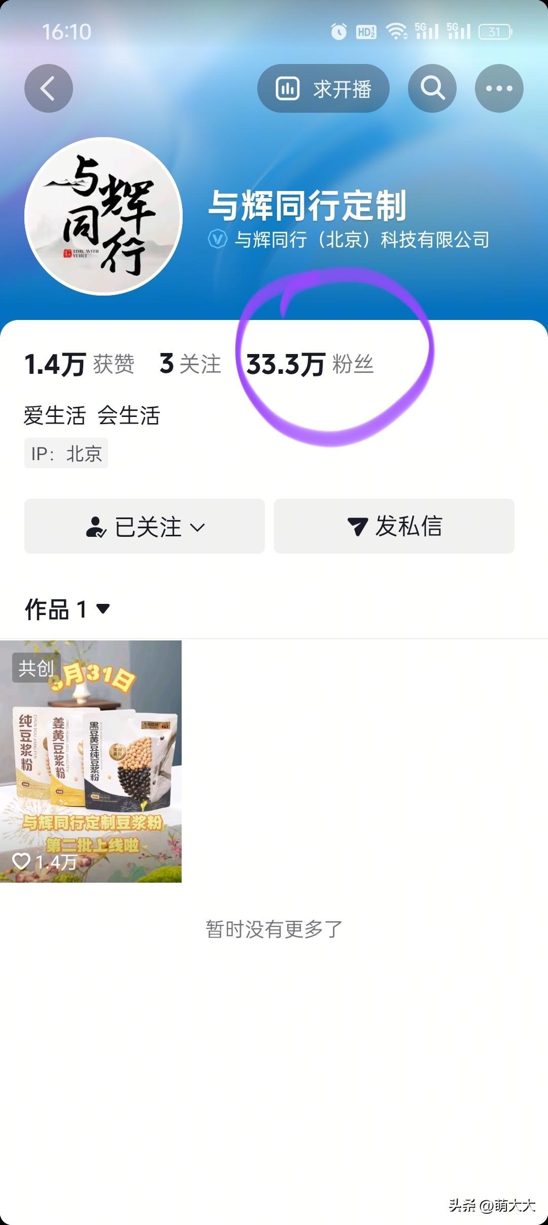 新账号「与辉同行定制」已正式上线,短时间内受到不少网友关注,粉丝增长迅速。
