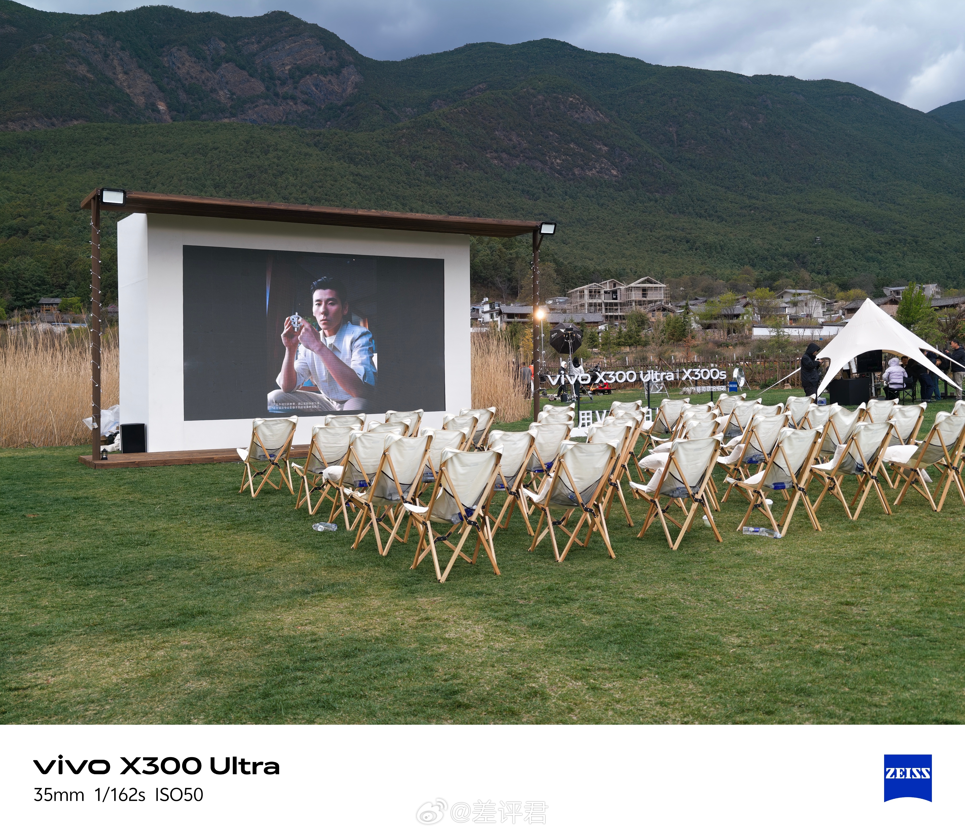 #差评在现场# vivo 把发布会选在了云南丽江的一个度假村,在一大片草地上现搭的发布会巨棚,旁边就能看到玉龙雪山,说是在画里开发布会都不过分。。。棚外所有新品都已经摆上了,X300s装备已经够全了,X300U简直就是武装到牙齿,今天还有幸用增距镜拍到了日照金山,晚点给大家分享样张