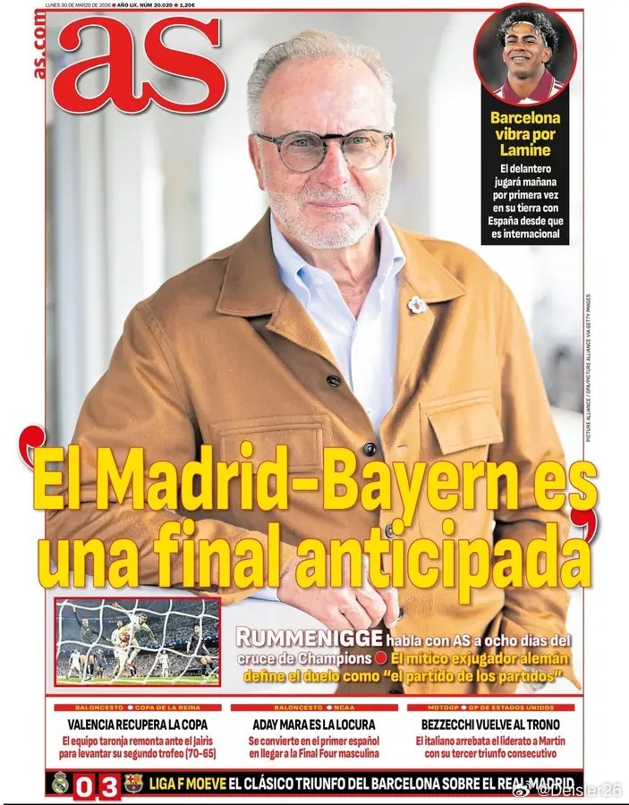 🎙️魯梅尼格:“這是歐冠歷史上交手次數最多的對決——我查過資料。至今雙方已交手 28 次。皇家馬德里比我們多贏了兩場。在歐足聯俱樂部排名中也是如此:他們位居榜首,我們緊隨其後。這是巔峰之戰,是所有比賽中的巔峰之戰,是決賽前的決賽。這是歷來最受矚目的對決。在2000年代,我們曾讓馬德里吃盡苦頭;近些年來他們則佔據上風。”