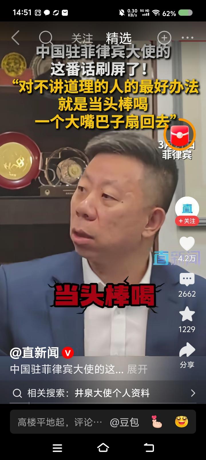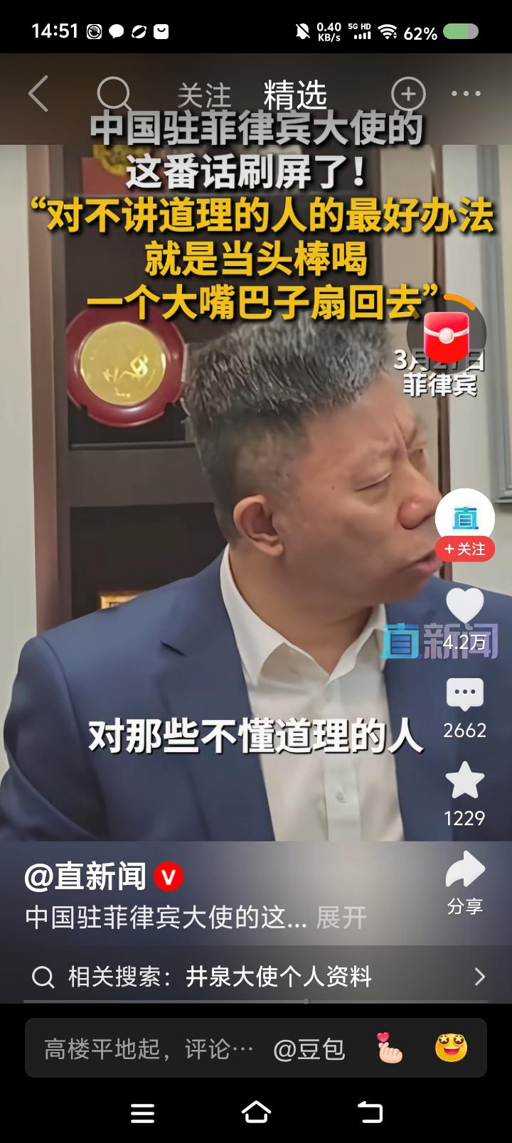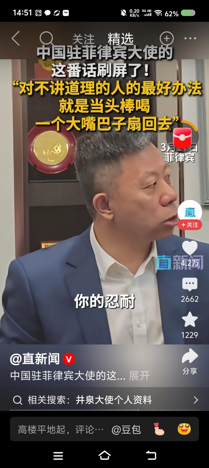 这位大使这燃吗?—— 据报道,中国驻菲律宾大使说:“对这帮人,最好的办法是当头棒