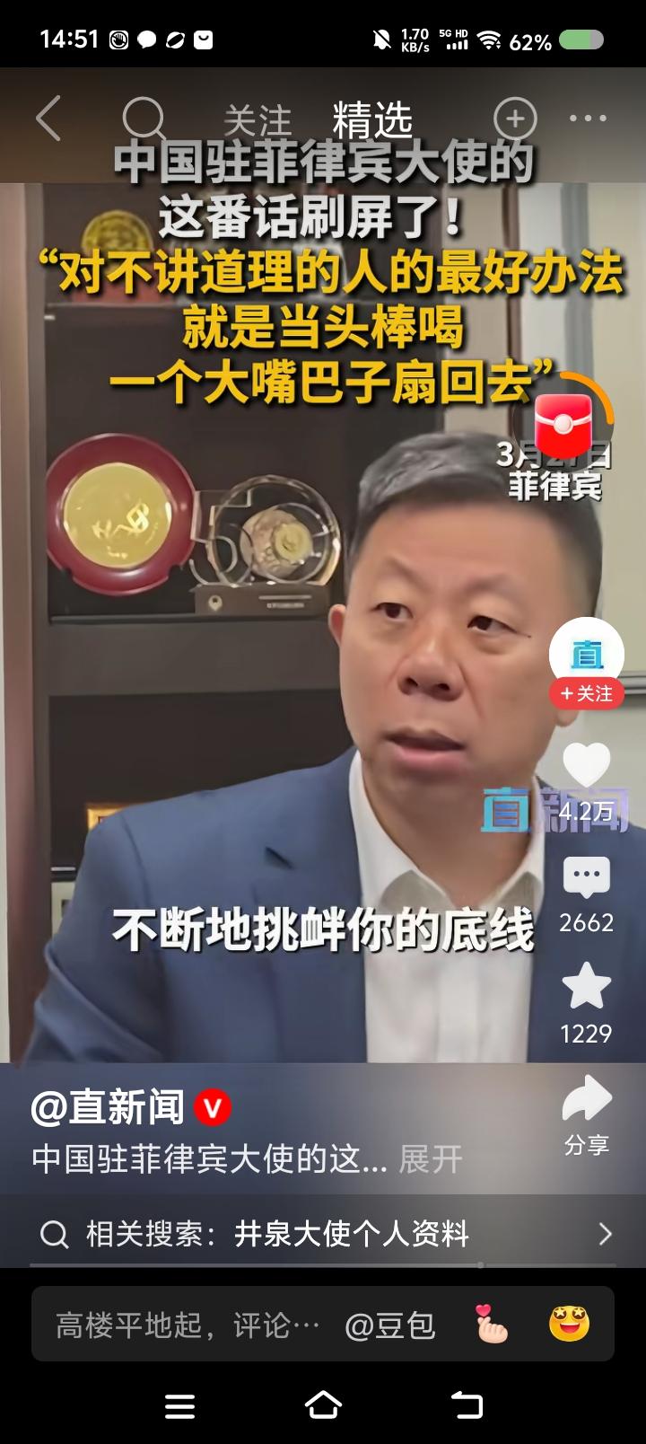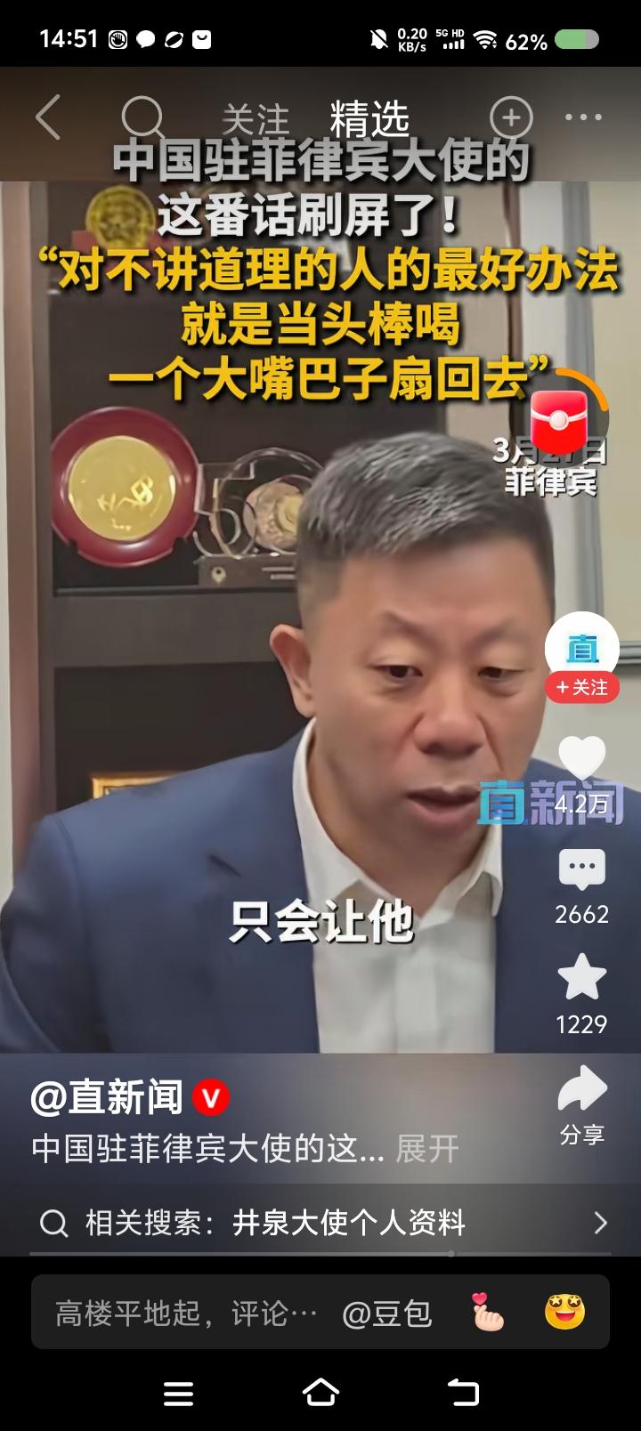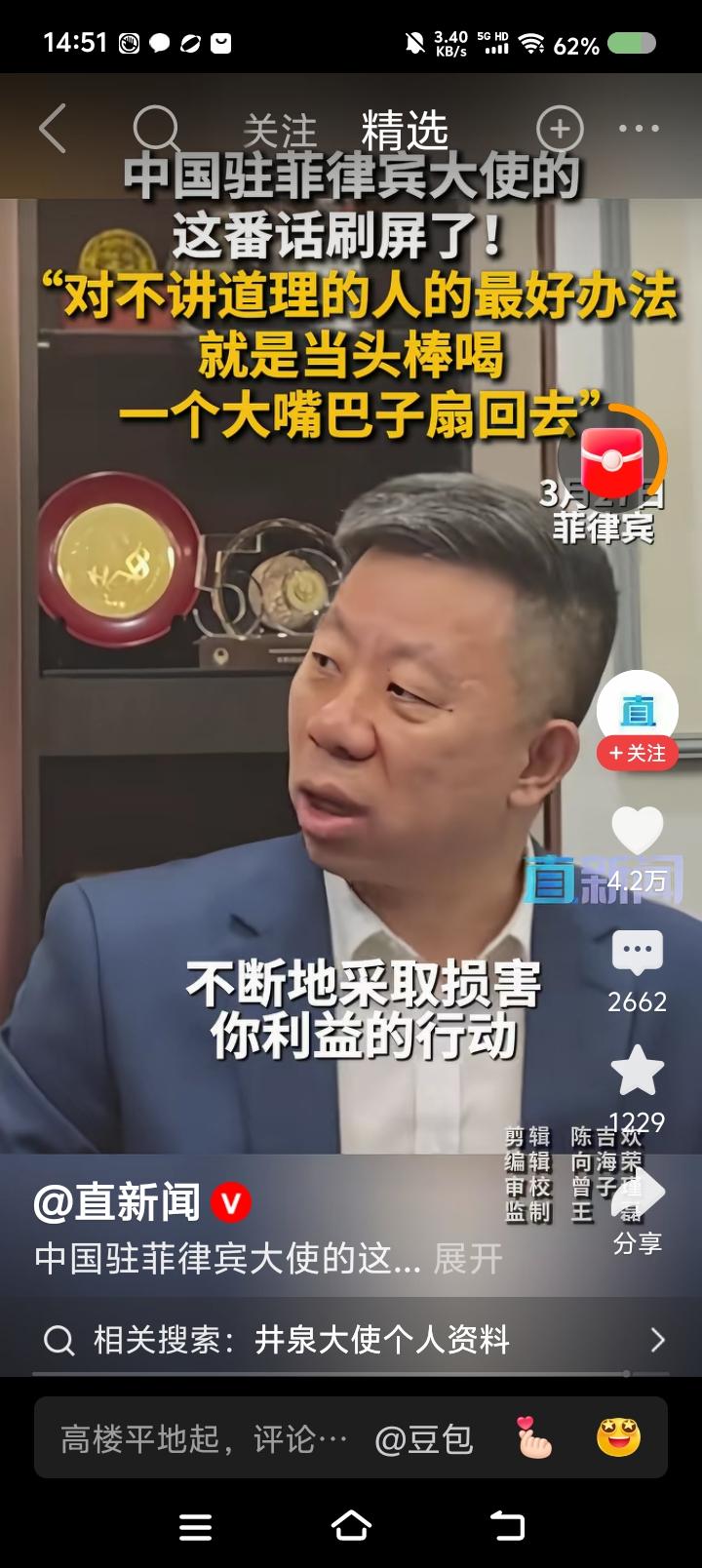 这位大使这燃吗?—— 据报道,中国驻菲律宾大使说:“对这帮人,最好的办法是当头棒