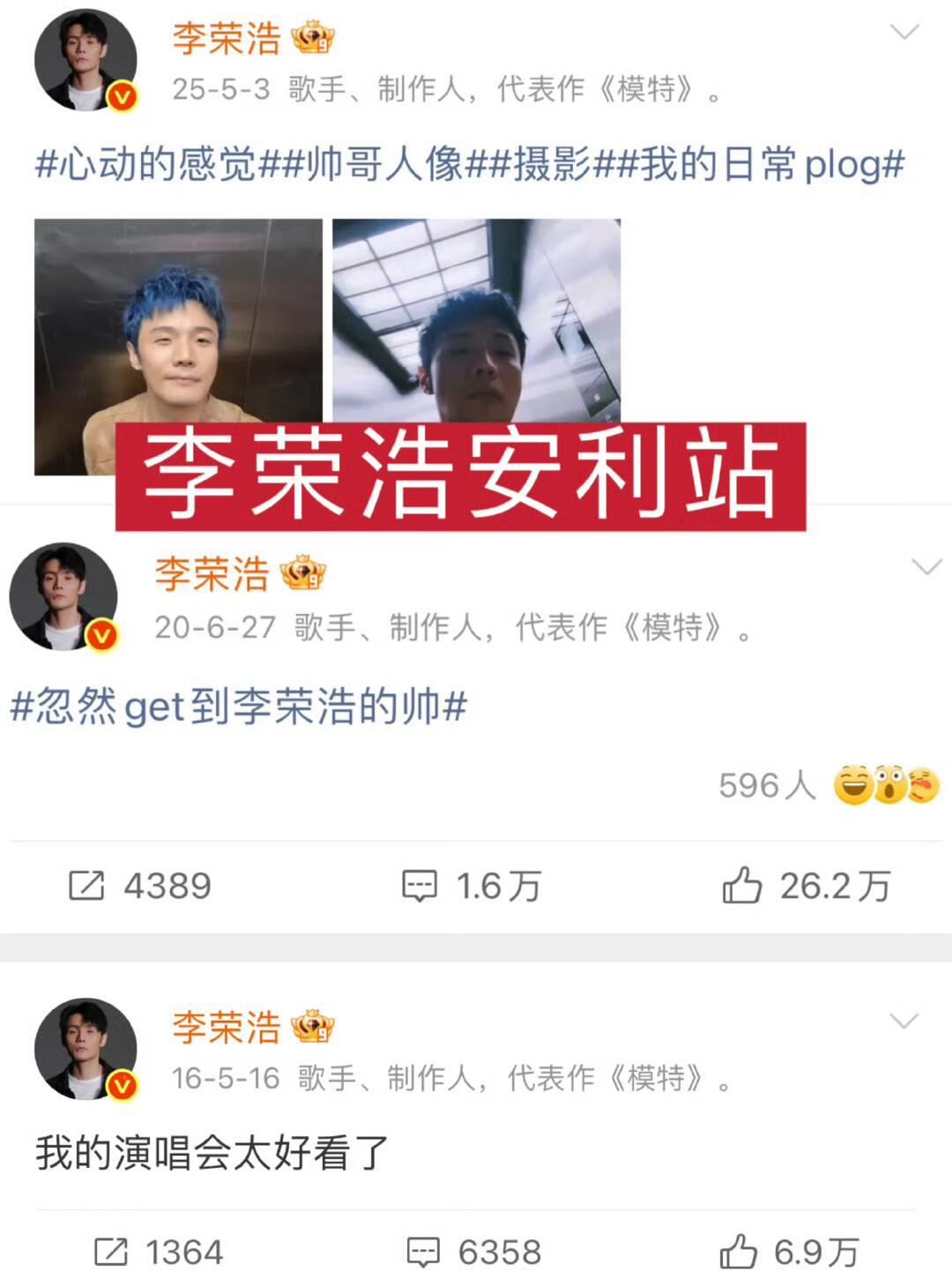 李荣浩一个人就是一个粉圈他还因发微博掉了十个粉丝,搞的不敢发了散粉是他,大粉是他,战斗粉也是他❗️