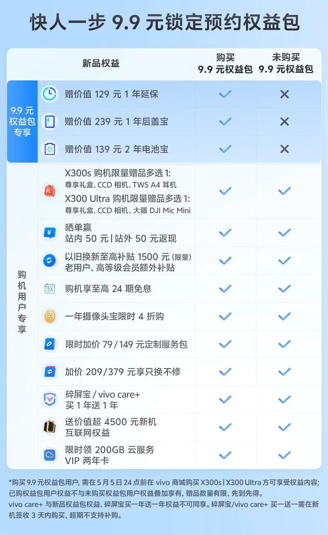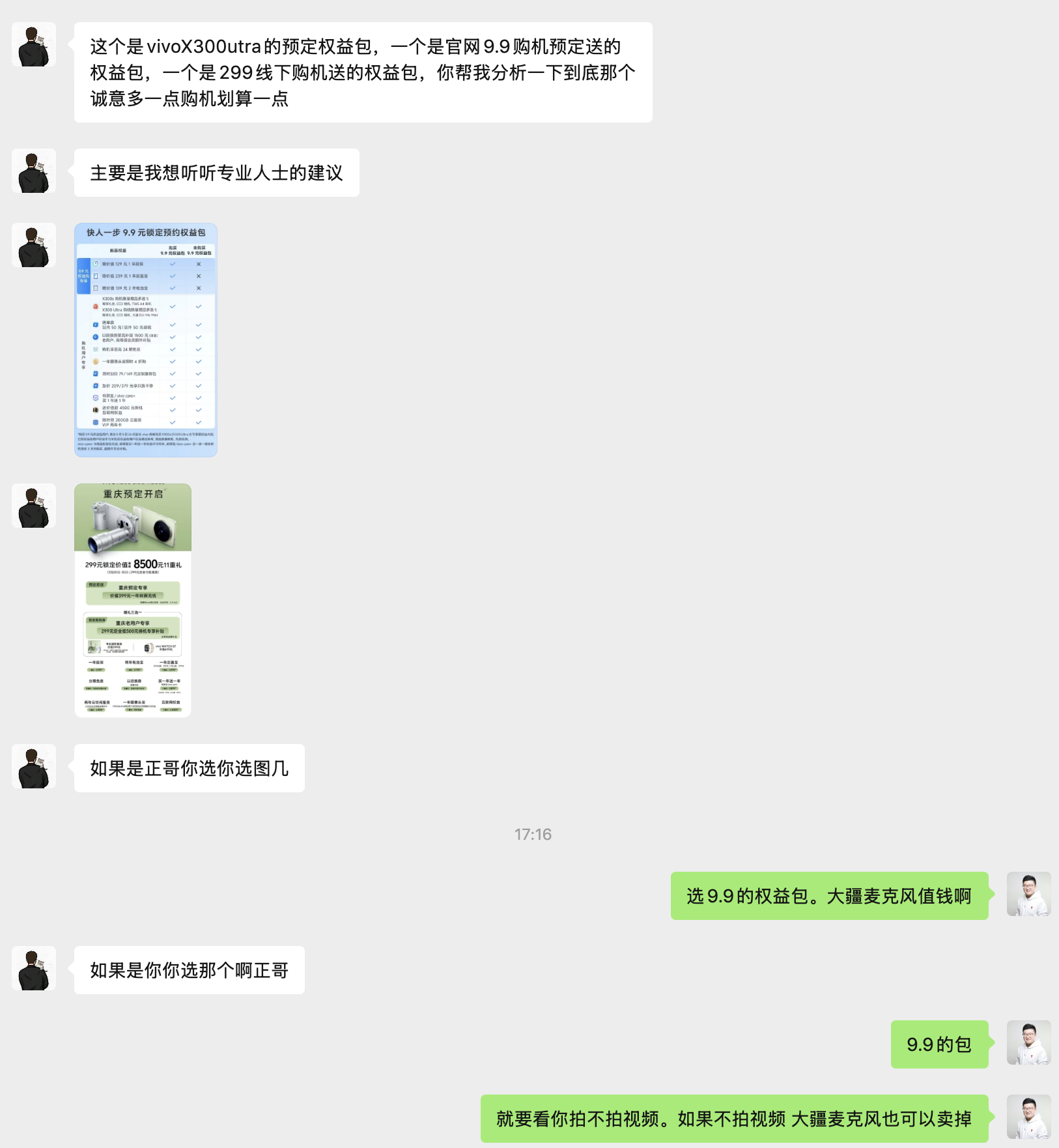 硬粉问我,X300Ultra的预约权益包怎么选,有9.9的和299的,我建议他闭