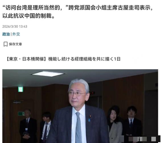态度很嚣张!在被我们制裁之后,古屋圭司出来回应了!3月30日,根据日本产经新闻报道,在“日华议员恳谈会”会长古屋圭司被我们采取冻结财产、禁止入境等制裁措施之后,此人站出来对记者声称,“访问”台湾对我们国会团体来说是理所当然的。这些制裁是典型的中国式做法。自己几十年都没去过中国,在中国也没有任何资产,所以“这些制裁不会影响到我”。 很显然,在被我们制裁之后,此人嘴巴很硬,其放话传递的意思非常清楚,那就是制裁对他无用,他本人不会理会中国的制裁令,而是将继续窜访台湾。 要知道,古屋圭司不是普通议员,他是日本国会最大跨党派亲台组织“日华议员恳谈会”的会长,更是现任首相高市早苗的核心幕僚,还担任自民党选举对策委员长,在日本政坛能量不小。 这个“日华议员恳谈会”来头也大,1973年中日邦交正常化后就成立,专门搞日台政治勾连,成员一度接近300人,占日本国会议员近四成,是日本右翼“台湾帮”的核心据点。 古屋圭司从2018年起就多次率团窜台,去年10月还专门组团去台湾参加所谓“双十节”活动,和“台独”势力勾连得很深。 他说制裁对他没用,这话听着硬,其实是典型的嘴硬。 他说几十年没去过大陆、在大陆没资产,看似能躲开冻结财产、禁止入境的措施,但他忽略了一个关键:制裁从来不是只针对个人,更是对其背后势力的敲打,也是对日本政坛亲台势力的明确警告。 中方这次制裁,依据的是《反外国制裁法》,针对的是他违背一个中国原则、粗暴干涉中国内政的恶劣行径,目的不是让他个人肉疼,而是让日本政界看清:在台湾问题上踩红线,必然要付出代价。 古屋圭司的嚣张,不是个人行为,而是日本右翼势力在涉台问题上不断试探、不断越线的缩影。近年来,日本政坛涉台言论越来越出格,从首相到议员,频频发表错误言论,甚至鼓噪日台“军事交流”,本质上是想借台湾问题牵制中国,同时为自身右翼化、军事松绑找借口。 而“日华议员恳谈会”这类组织,就是他们勾连“台独”、突破中日政治文件底线的“白手套”。 古屋圭司说“访问台湾理所当然”,这话完全站不住脚。 中日四个政治文件白纸黑字写着,日本承认世界上只有一个中国,台湾是中国领土不可分割的一部分。所谓“访问台湾”,本质就是窜访中国领土、支持“台独”分裂,是对中国主权的严重侵犯,何来“理所当然”?他把中方反制说成“典型的中国式做法”,更是倒打一耙——明明是他自己先挑衅,中方才依法反制,这是任何主权国家维护自身利益的正常举动,和“中国式做法”毫无关系。 他以为没资产、不入境就没事,其实是低估了中方反制的决心和力度。外交部发言人毛宁明确表示,中方还将视情对其采取其他一切必要的惩治措施。 这意味着,这次制裁只是第一步,后续如果他继续窜台、继续勾连“台独”,中方必然会有更严厉的反制。 而且,制裁的影响也会传导到他的政治生涯:被中方列入反制清单,意味着他在国际舞台上的活动空间会被大幅压缩,和中国相关的所有合作、交流都会被切断,这对一个活跃在政坛的议员来说,绝非“没影响”三个字能掩盖的。 从更大层面看,中方这次制裁古屋圭司,也是给日本政府敲警钟。日本政府一直声称恪守一个中国原则,但对国内议员频频窜台、发表涉台谬论的行为,始终采取纵容、默许的态度,甚至暗中支持。 中方的反制,就是明确告诉日本:纵容“台独”势力、破坏中日关系政治基础,最终只会损害日本自身利益。 中日关系的健康稳定发展,离不开日本切实恪守一个中国原则,停止任何形式的日台官方往来,彻底斩断和“台独”势力的勾连。 古屋圭司的嘴硬,改变不了台湾是中国领土的事实,也挡不住中方维护国家主权和领土完整的决心。 任何企图分裂自己国家的人,任何干涉中国内政的外部势力,都必将遭到坚决反制,也必然会以失败告终。 日本右翼势力如果还看不清形势,继续在台湾问题上玩火,最终只会引火烧身,付出更沉重的代价。