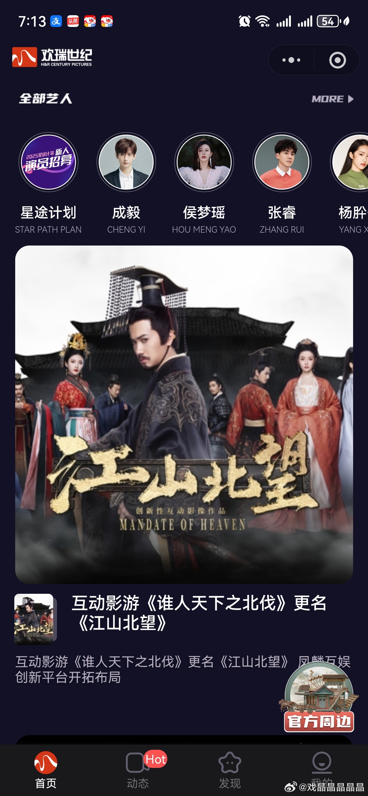 欢瑞世纪出2025年报预披露了,亏损2亿元左右,看了一下欢瑞小程序,一哥还是成毅。