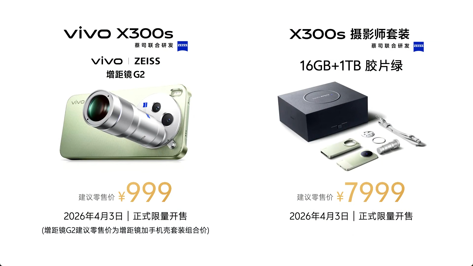 vivo蔡司增距镜G2,售价999元!