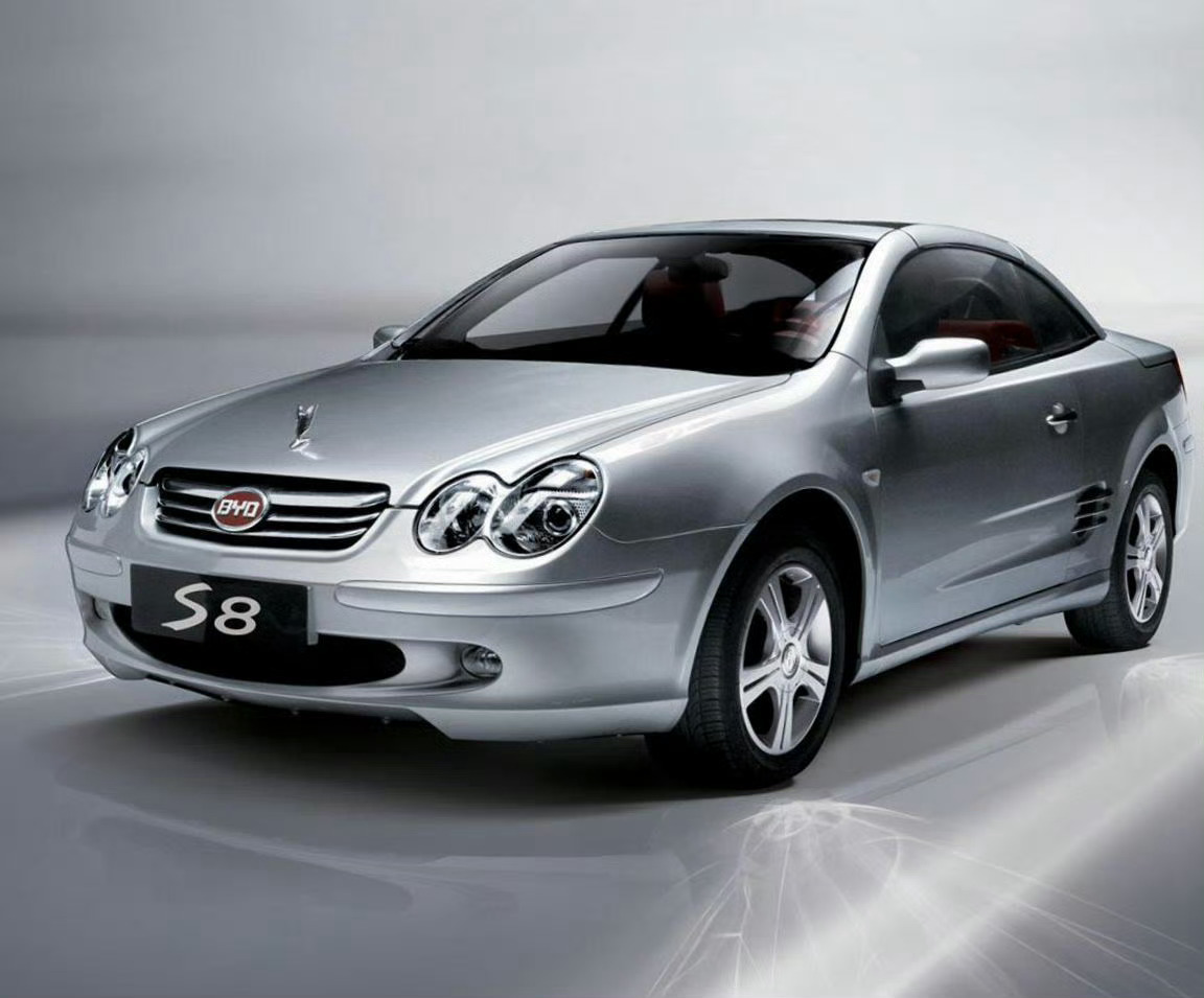 比亚迪S8于2006年在上海国际车展上发布,立马受到了国内外媒体的讥讽——实在是太像奔驰CLK了,花生灯照搬全抄,尾部也几乎与雷诺Megane CC一模一样。