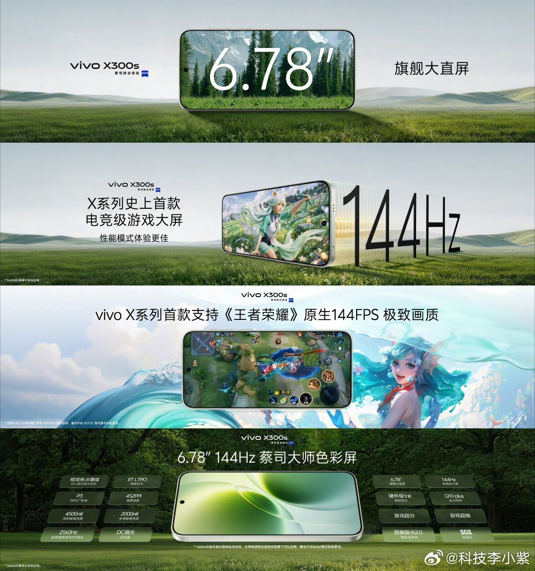 vivo X300s 超能小V单真的顶!蔡司两亿主摄加专业长焦,还有V3+影像芯片加持,拍照稳得很。全焦段变焦闪光灯跟X300 Ultra同款,逆光、拍多人都清晰好看。十多种胶片风格,还新出了追光和浓郁模式,调色简单又有质感。AI创作相机一键出片,人脸自然还超高清,和迪士尼联名的AI特效也很有意思。再配上更小更强的口红200增距镜,平时用够用,周末直接变Ultra。屏幕是6.78英寸144Hz高刷屏,玩王者满帧丝滑。搭载iQOO同款超核引擎,反应更快不卡顿。对称双扬声器声场更宽,游戏听声辨位更准。超大振动马达振感干脆,手感超棒。影像强、性能猛,这台小V单直接拉满体验!vivo X300s超能小V单