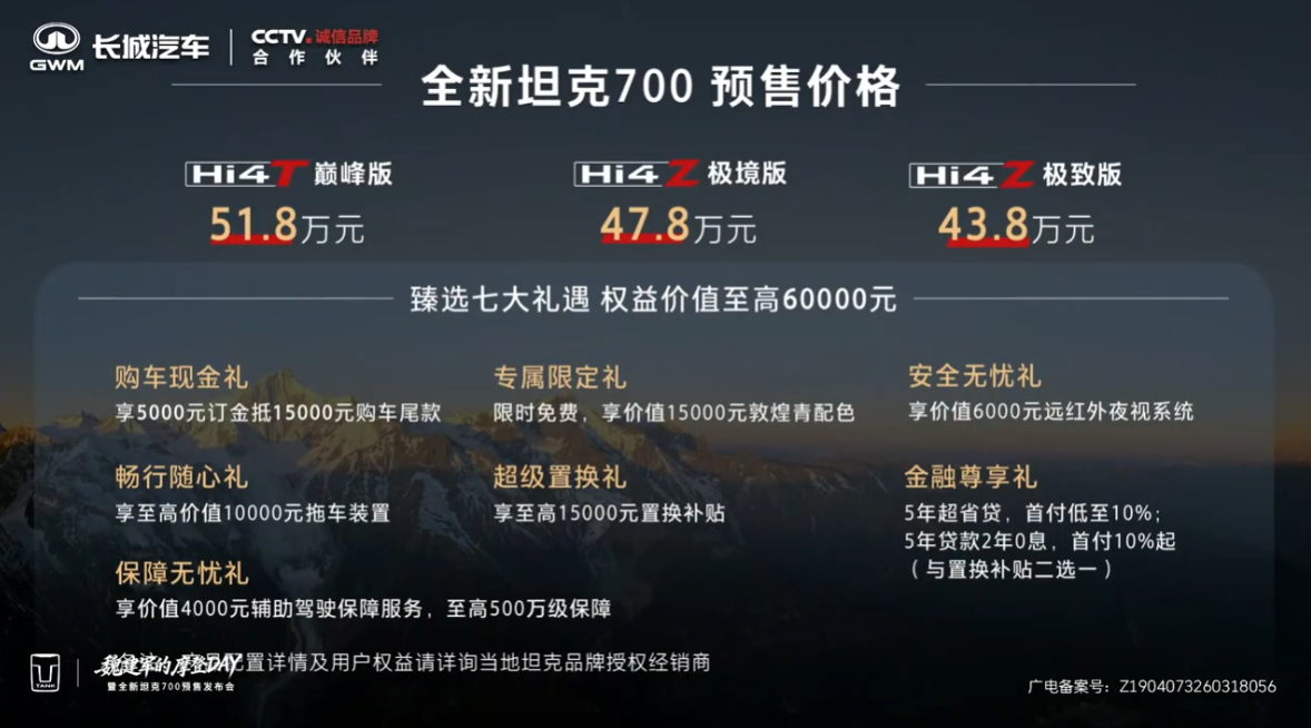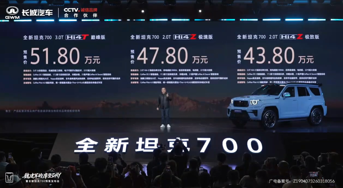 坦克700上市,43.8-51.8万这越野SUV很顶