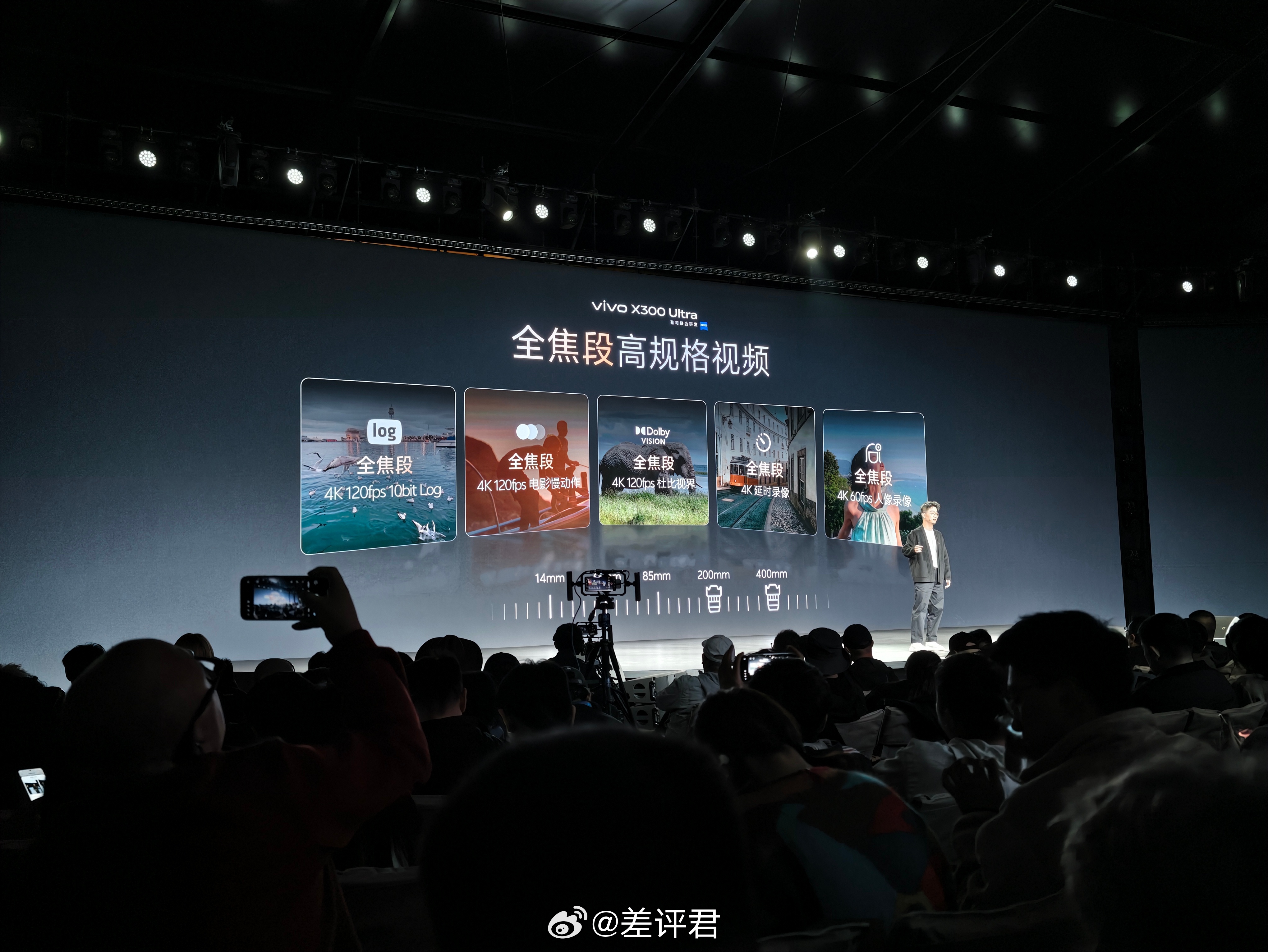主摄从 LYT-818 升级成了 1/1.12" 的 LYT-901;长焦从三星 HP9 升级成了 HP0,而且也有 OIS 光学防抖,800mm 也能做到运动抓拍。视频能力的上限也提升了,支持全焦段 4K 120fps 10bit Log、4K 120fps 杜比视界,发布会现场直播甚至还布置了 13 台手机直播机位。。。在我位置前面就有一个,是真的实时在播,另外出场的时候还看到有拿它当做实时监看的。