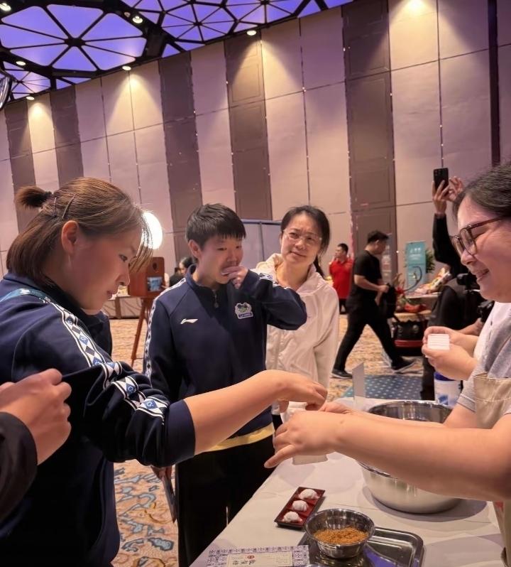 孙颖莎参加晚宴全程开心得像个无忧无虑的小朋友,眼里全是好吃的和好玩的,一会儿玩这个一会儿摸那个,兴致特别高。和佳佳一起吃完东西,还不忘认真竖起大拇指夸赞,太可爱了,完全没有冠军的架子。 只有在这样轻松的场合里,她才能暂时放下训练和比赛,卸下所有包袱,做回简单快乐的自己。 希望莎莎能多一些这样自在快乐的时刻,好好享受生活,再带着满满的能量继续向前。
