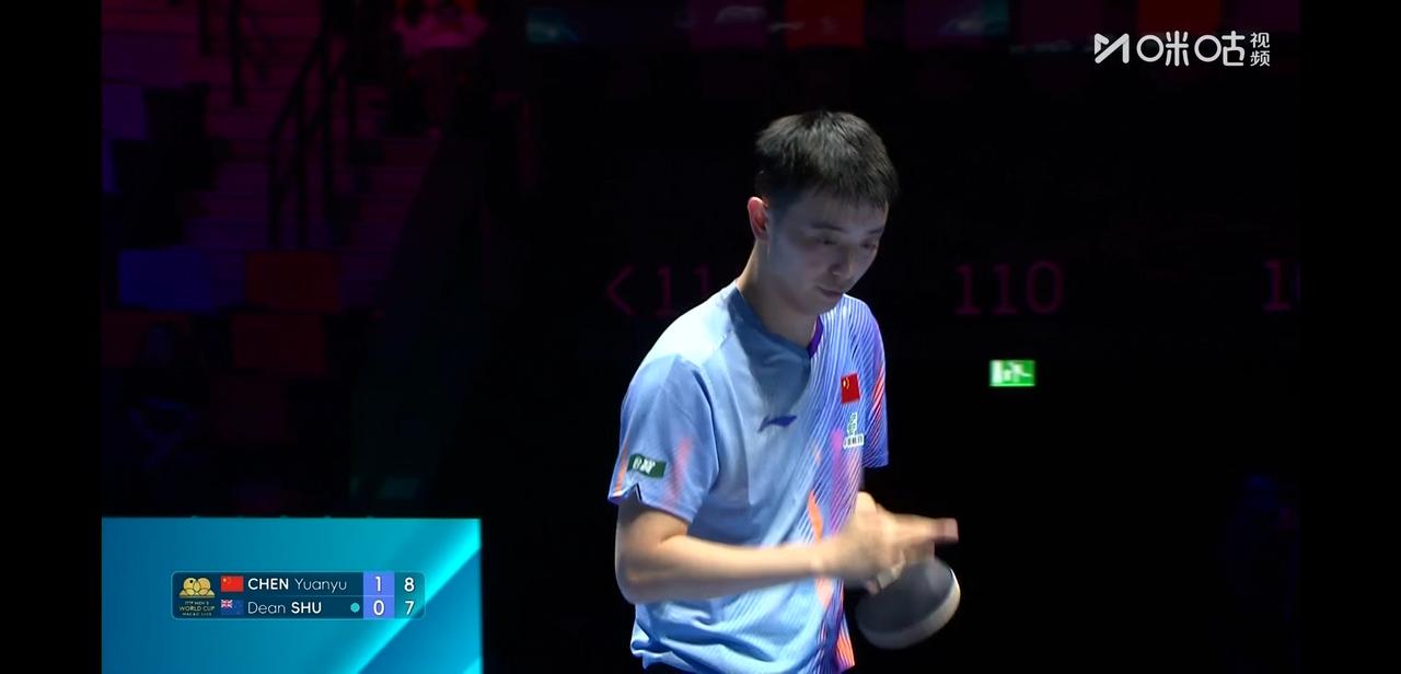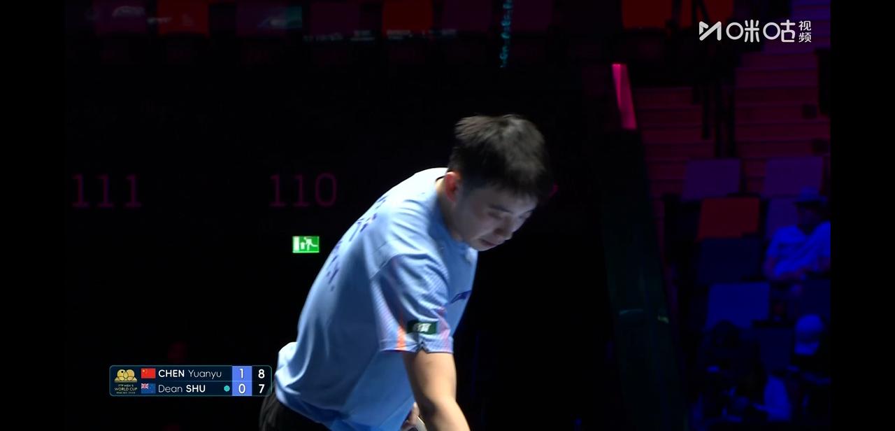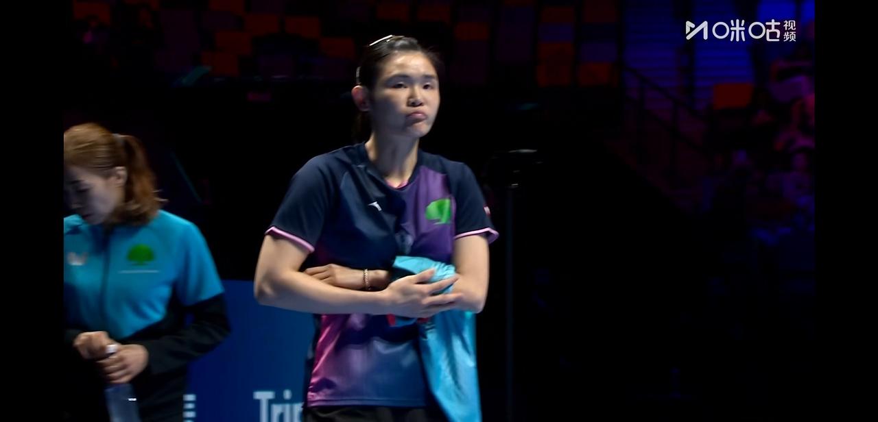 第一局11:3看到局间教练指导的时候李昱淳撅着嘴,