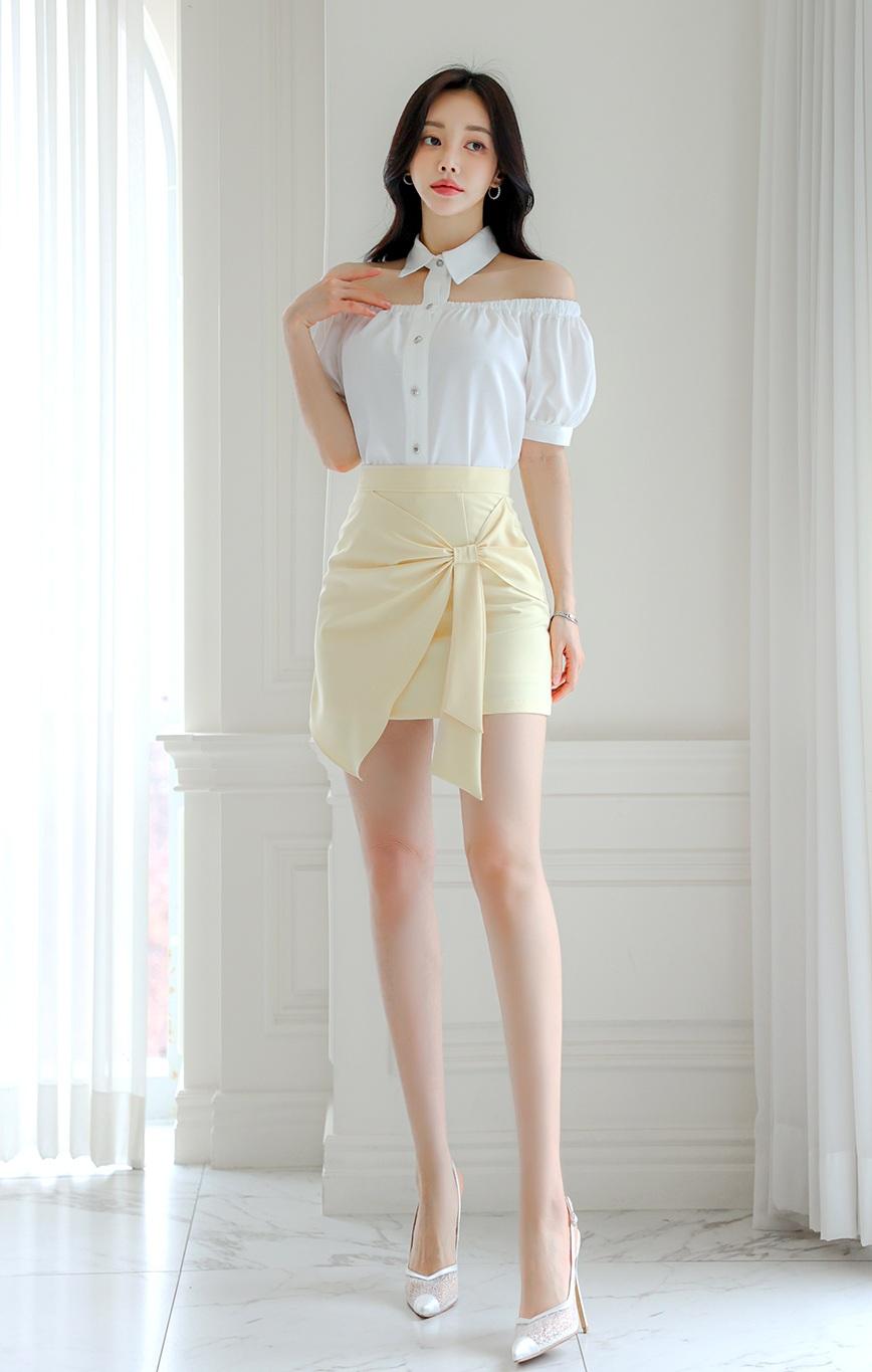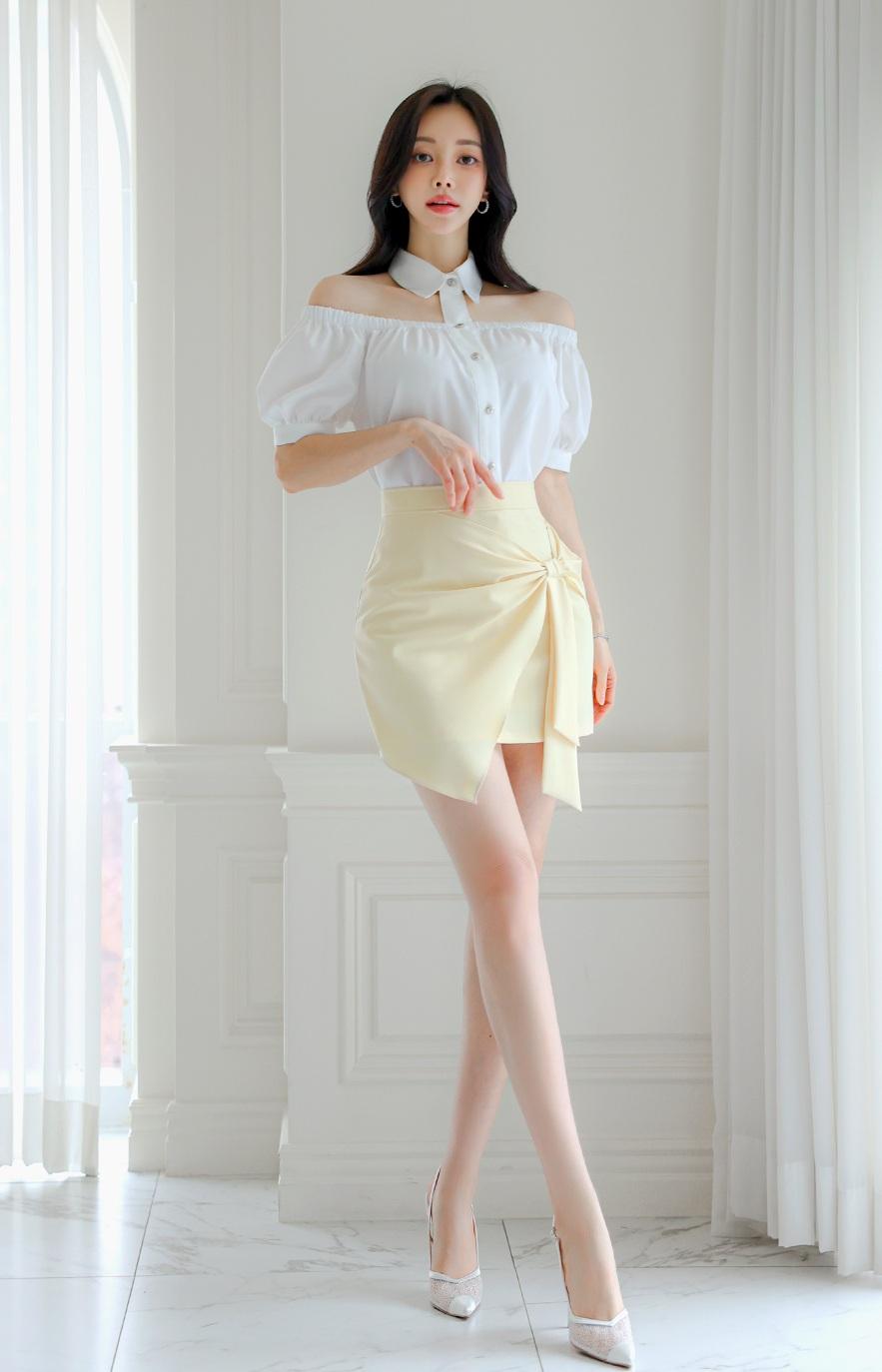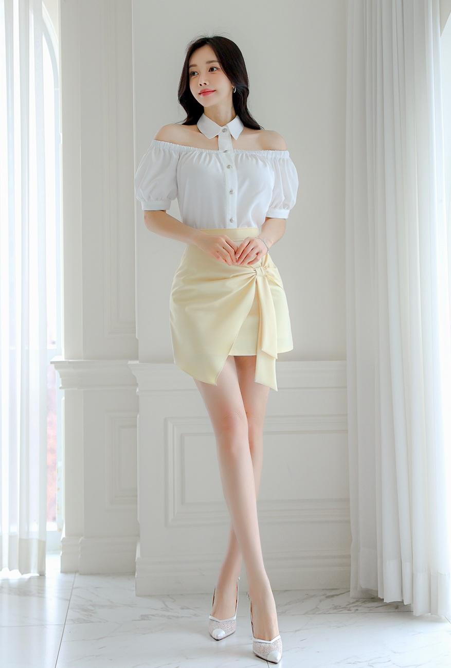优雅白衬衫+黄色短裙,气质满满!