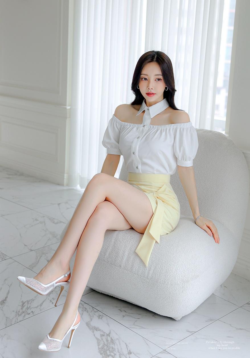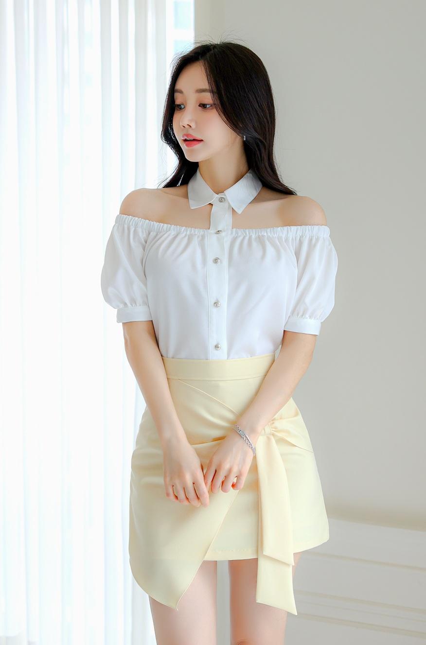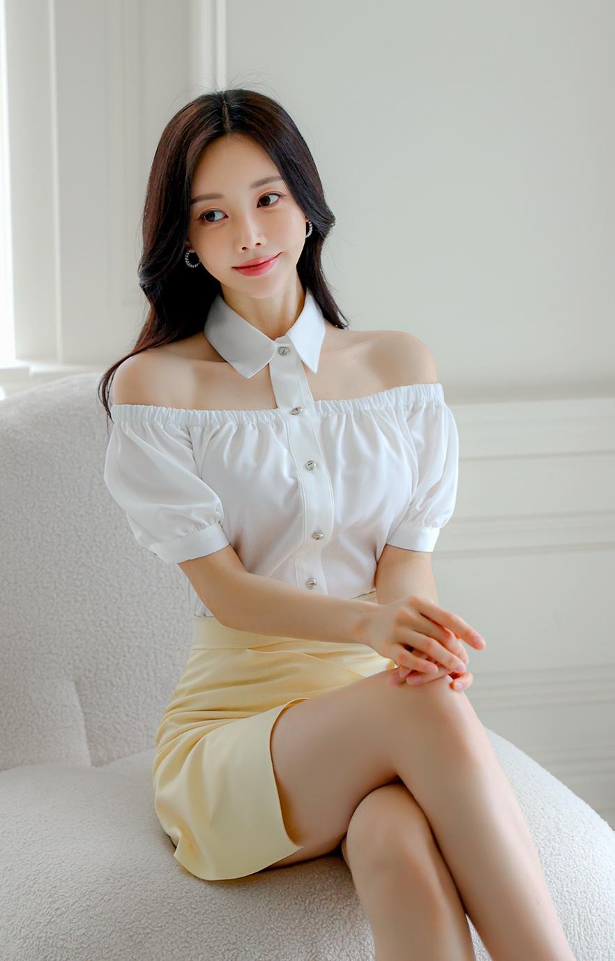 优雅白衬衫+黄色短裙,气质满满!