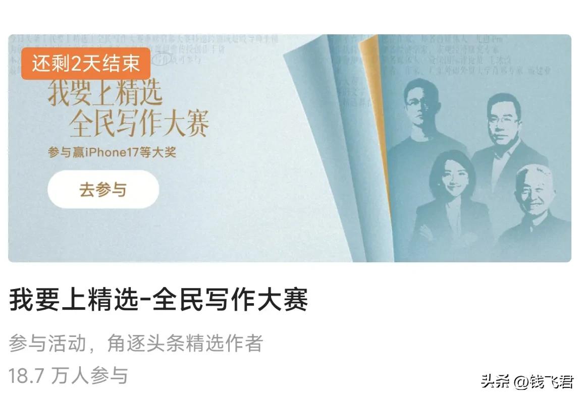 不得不说,头条“我要上精选“活动真的太懂写作者了!不仅集结了戴建业等各领域顶尖导师,阵容强大到让人惊喜,更难得的是导师们全程用心点评,不敷衍、不套路,认真对待每一篇参赛作品,哪怕是新手的青涩创作,也能得到专业的指导与鼓励。