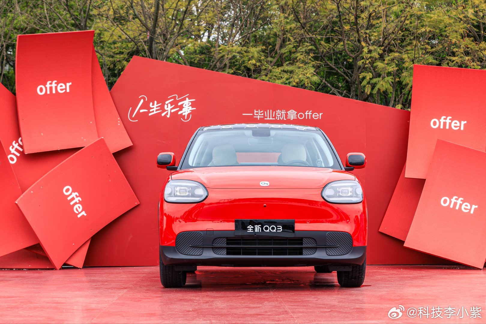 全新QQ3上市王者归来一部到位穿越23年快乐初心,智电时代王者登场!奇瑞全新QQ3携超高人气重磅上市,上市即交付,10大同级唯一、13大同级领先的越级实力,让世界看见「世界三小只中国有QQ」的硬核风采!颜值即正义,出行皆风景!红点双奖团队操刀的方圆美学,6种车身配色搭36色DIY车顶,法拉利同款6层2K清漆10年不褪色,256色氛围灯拉满仪式感,每一次出行都是移动的时尚秀场,好看更经得起时光推敲。小身材大格局,座座皆从容!A0级车身藏B级超大空间,2700mm超长轴距+85%超高得房率,二排轻松跷二郎腿,70L智能电动前备箱+375-1450L可拓展后备箱,38处储物空间装下全家幸福。后置后驱+四轮独立悬架,5.2米灵巧转弯,16.5分钟快充+6.6KW外放电,补能自由,驾趣无限,小车也能放肆奔赴诗与远方。硬核强体魄,守护无死角!82%高强度钢+16%热成型钢打造磐石车身,1300MPa一体式热成型门环比普通钢强3倍;标配通过六维电安全认证的犀牛电池,IP68防水、-40℃~60℃宽温域畅行,0自燃更安心。540全景影像+6安全气囊+38m百公里刹停,从城市穿梭到长途远行,全方位守护每一次出发。智能更懂你,旅途满乐趣!15.6英寸2.5K超清中控屏搭配高通8155芯片,Carmind大模型化身专属情绪搭子,AI畅聊、绘画、讲故事样样行,孩子也能轻松手势控车。猎鹰500驾辅加持高速NOA和100+场景自动泊车,L2级辅助驾驶全程在线,还有50W无线快充、全品牌手机互联、100+APP随心装,智能出行,心有灵犀~享受豪车标配,让快乐不设限,生活一部到位!全新QQ3,你的快乐出行主力车!