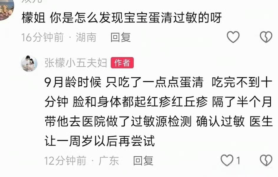 张檬一家搬入大平层新居,11个月大的儿子Dylan因蛋清过敏,食用后十分钟内出现红疹,医生建议满周岁再尝试,现阶段仅可食用纯蛋黄。