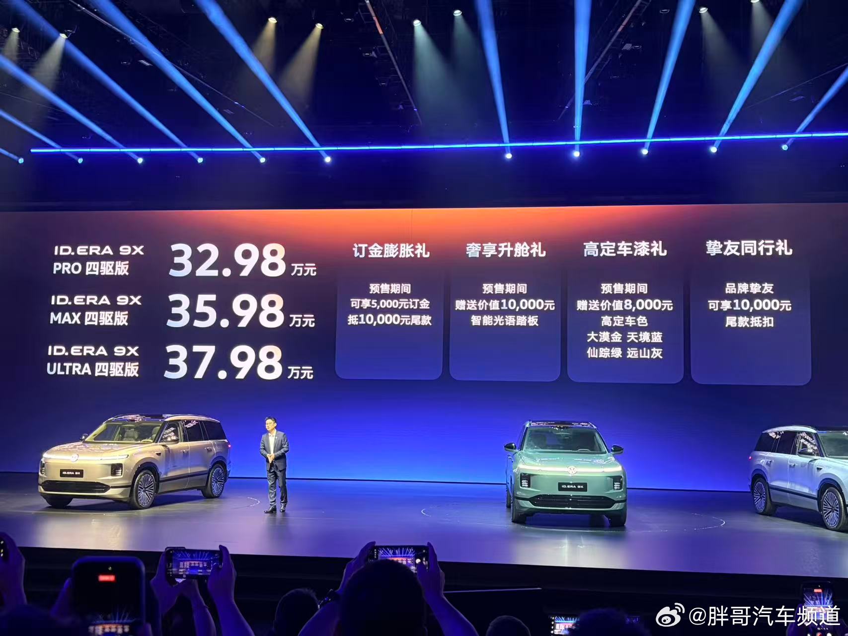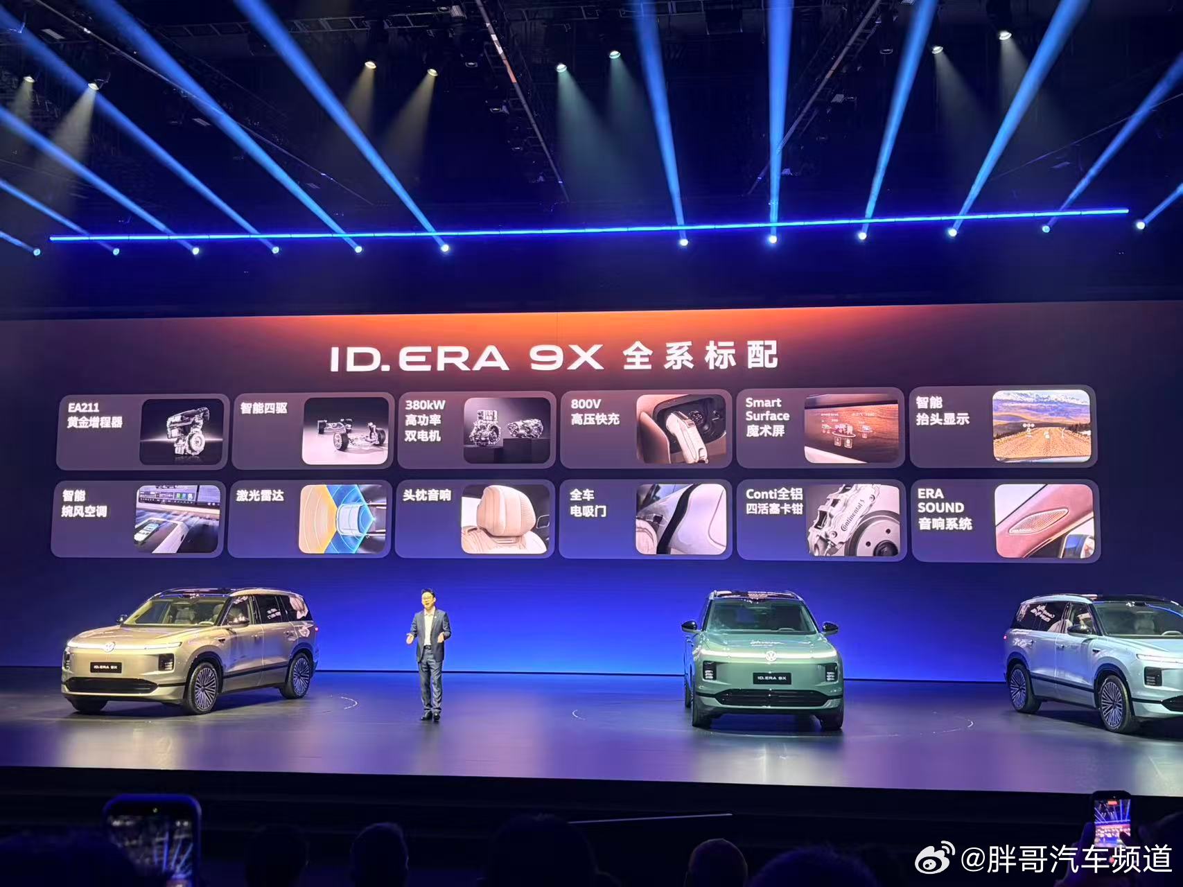 上汽大众ID.ERA 9X开启预售了,预售区间 32.98-37.98万元,手头有大众或奥迪老车主身份,预售期还有尾款抵扣权益。新车定位大型SUV(车长超5.2米,比途昂还大),主打云栖智舱。亮点是九屏交互(含后排吸顶屏)和二排动态零重力座椅。动力配置方面,新车搭载 1.5T EA211增程器+双电机四驱,CLTC纯电续航406km,综合续航超1600km,且支持800V高压快充。预计新车保留了大众的德系底盘调校,还加了主动后轮转向和蟹行模式,试图兼顾大车灵活性。智能化部分,新车全系标配192线激光雷达,搭载Momenta R7强化学习模型,支持点到点城区领航辅助。那么,这个价位,你会选德系背书的大众ID.ERA 9X吗?评论区告诉我。大众9X是增程车的终极答案吗ID.ERA 9X预售发布会 德系满级旗舰SUV