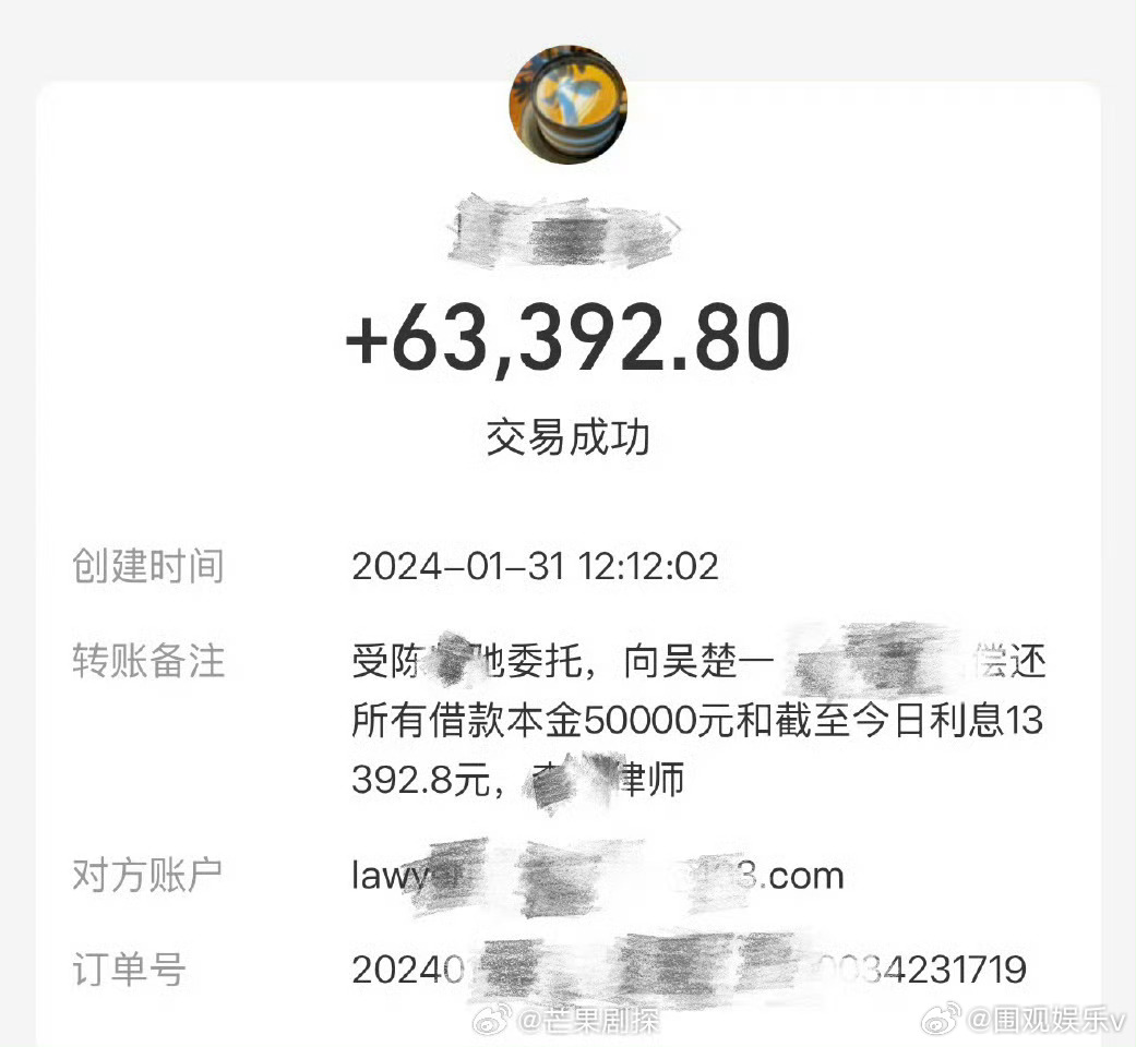吴楚一把陈牧驰还的钱捐给韩红基金会了吴楚一把陈牧驰欠的钱捐了 吴楚一把陈牧驰还的钱💰捐给韩红基金会了