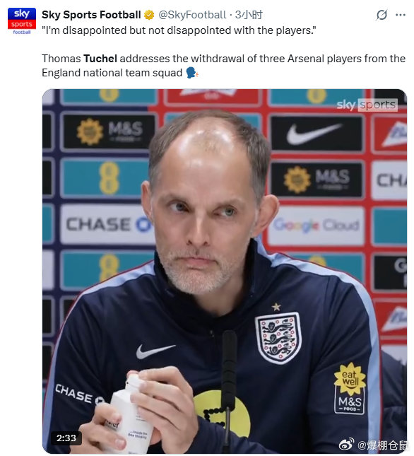 【现实情况】三名阿森纳球员因为不适或伤病退出本期英格兰队,三狮主教练图赫尔表示: