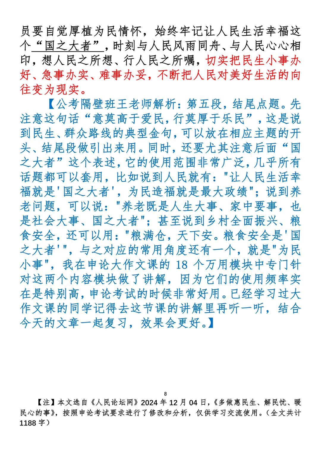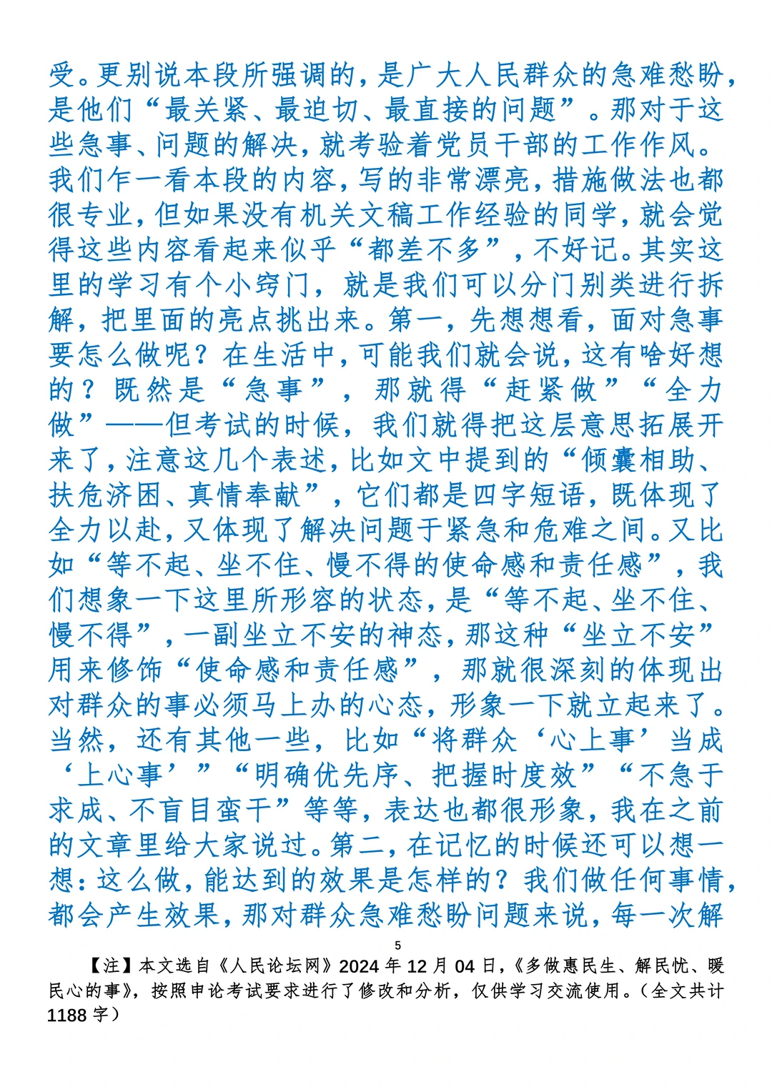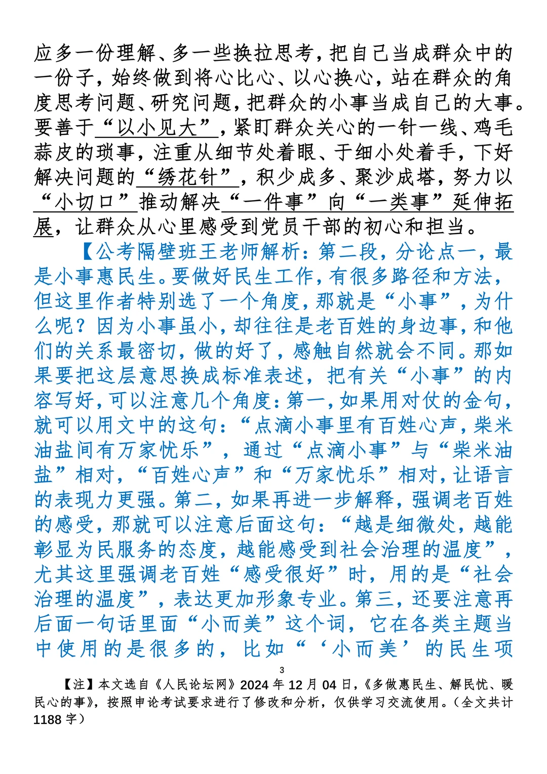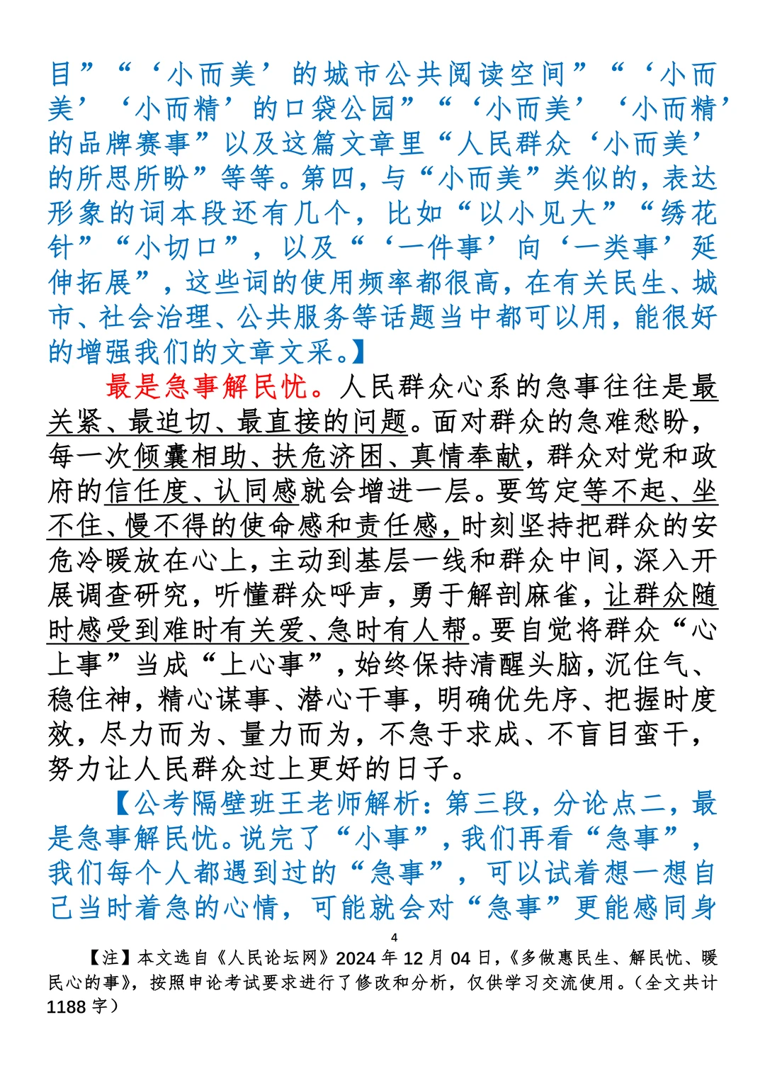 如何抄写:每日抄写文章发在“公考隔壁班王老师”账号,红色字是重点句和结构句,黑色字是正文,蓝色字是解析,大家抄写时不必抄蓝色字。建议先通读全文,做到心中有数再开始抄写,效果会更好。 关于文章:抄写文章来源于人民日报,但每篇文章我都根据申论考试要求进行了修改:一是重写或修改开头、结尾;二是统一段首句句式结构;三是调整段落字数,使文章结构更均衡;四是简化复杂长难句,使之更具可模仿性。每篇文章无论修改多少,都是基于申论考试要求,毫无对人民日报文章品评之意。(此处致敬人民日报)