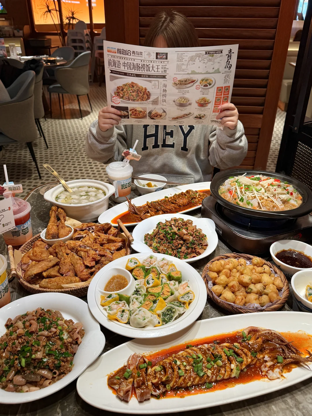 就在天主教堂附近😭好好吃啊……香酥鸡!外焦里嫩一口爆汁,蘸辣油绝了!还有海肠捞饭、满满都是料我好爱啊 这个店是我跟室友每次来青岛的干饭根据地!他家除了海鲜,还有青岛特色小吃香酱烤鱿鱼、全家福水饺都很推荐~本碳水脑袋真的狂喜🥹🥹来青岛的姐妹一定要去试试 📍前海沿•青岛菜(中山路天主教堂店)