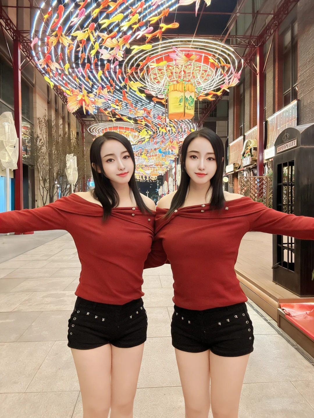 ◦ 侧身回头看镜头,鱼灯做背景,氛围感拉满