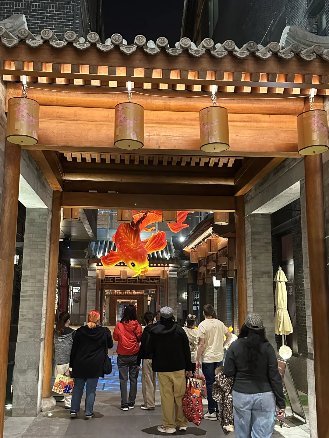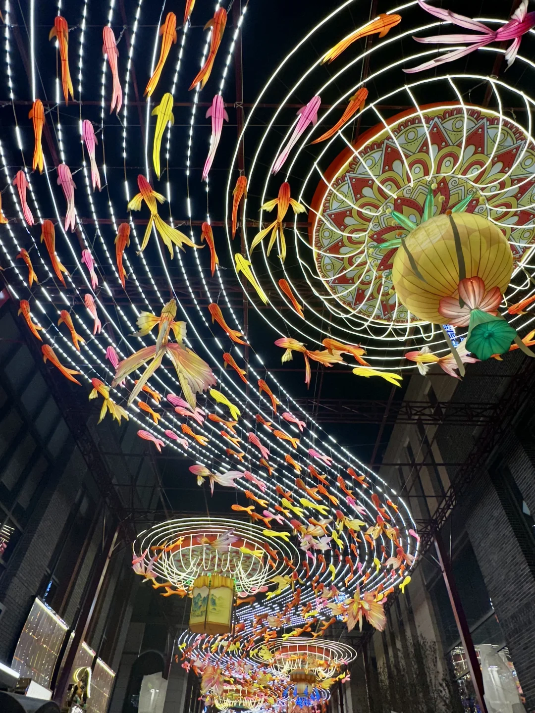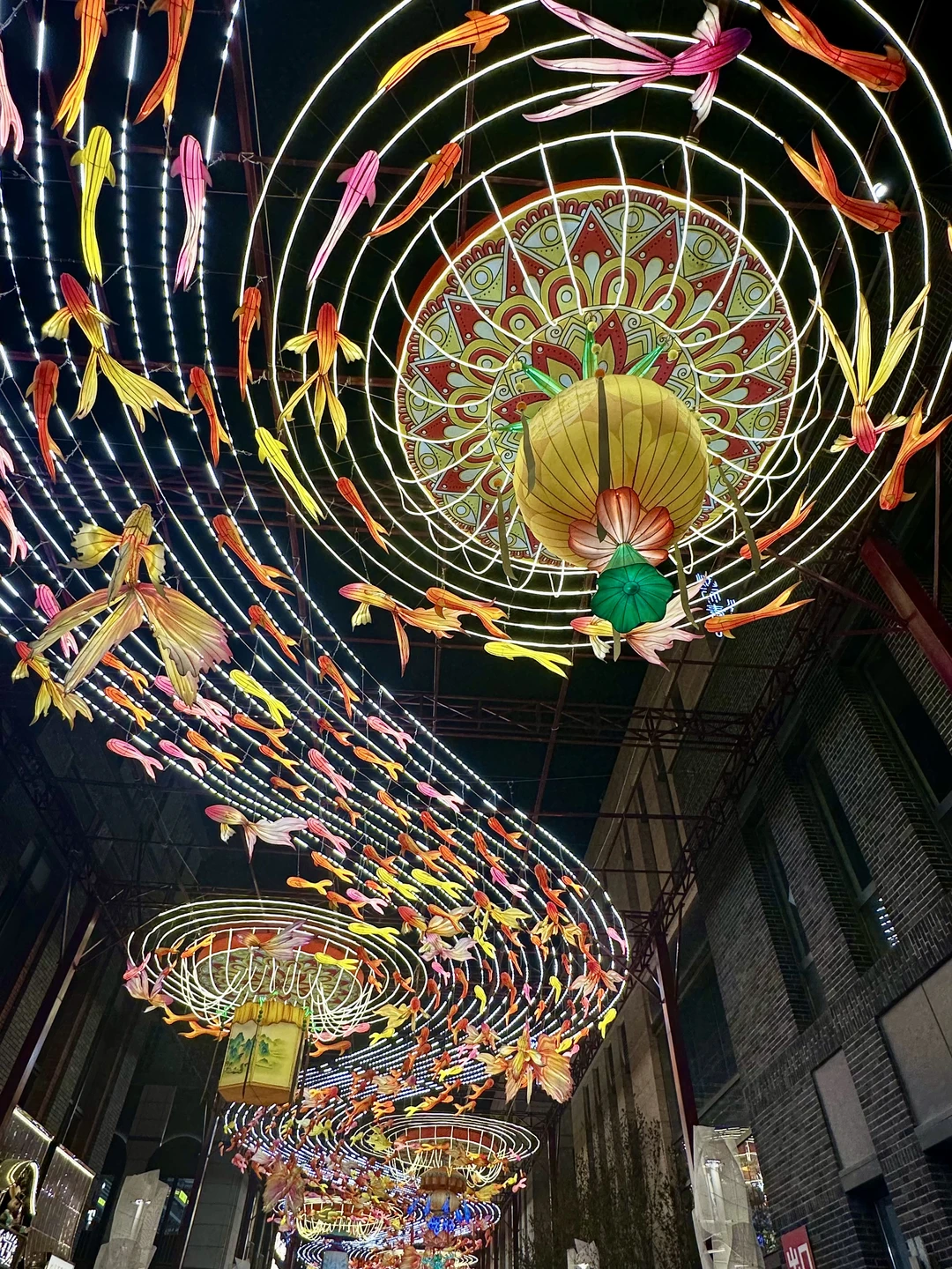在北京前门大街偶遇了这条「会发光的鱼灯长廊」,真的像闯进了课本里的老北京年味!